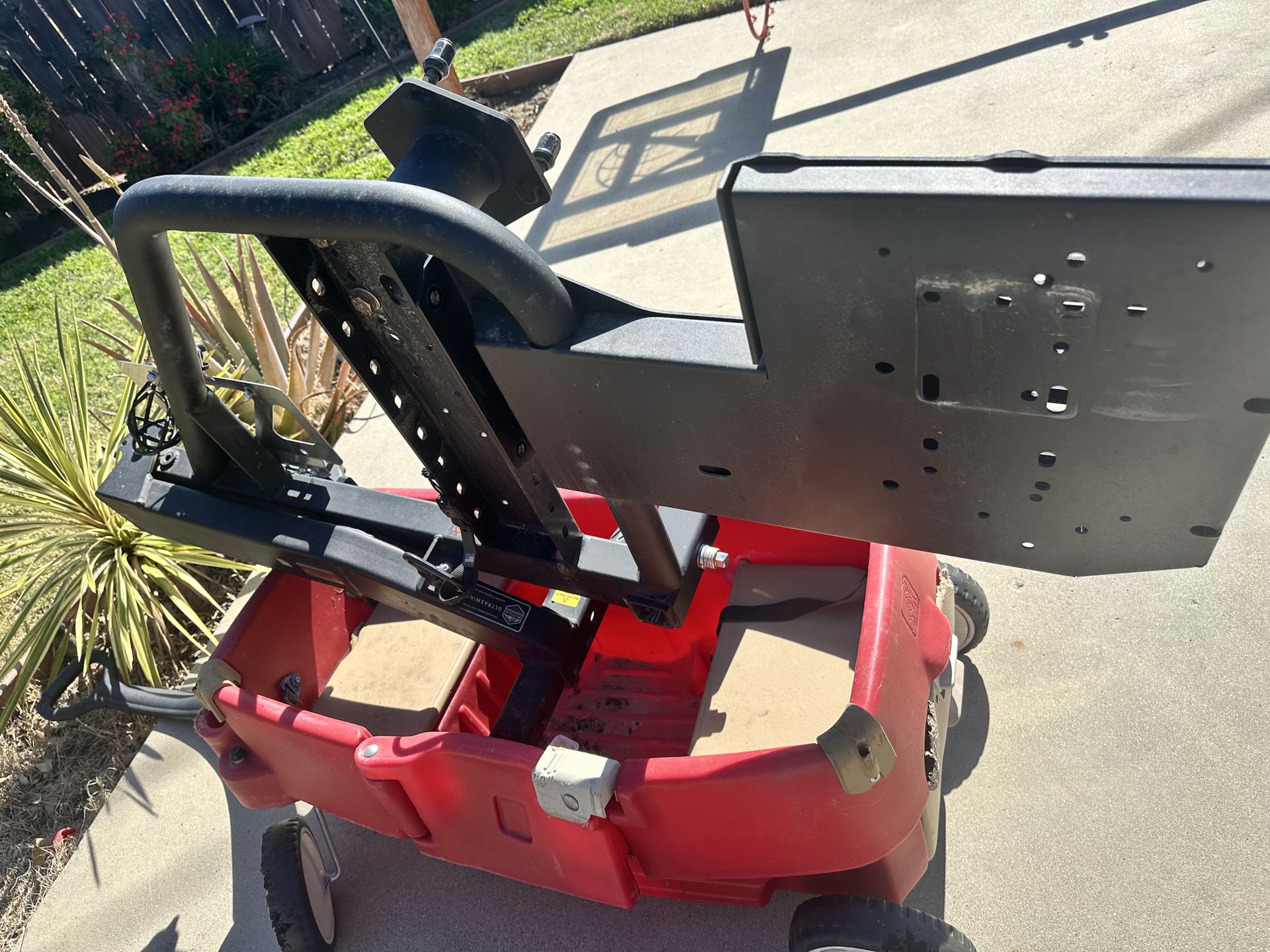 Rigd tire carrier with license plate mount with light, extra side mounting plate, and tow hitch extender.