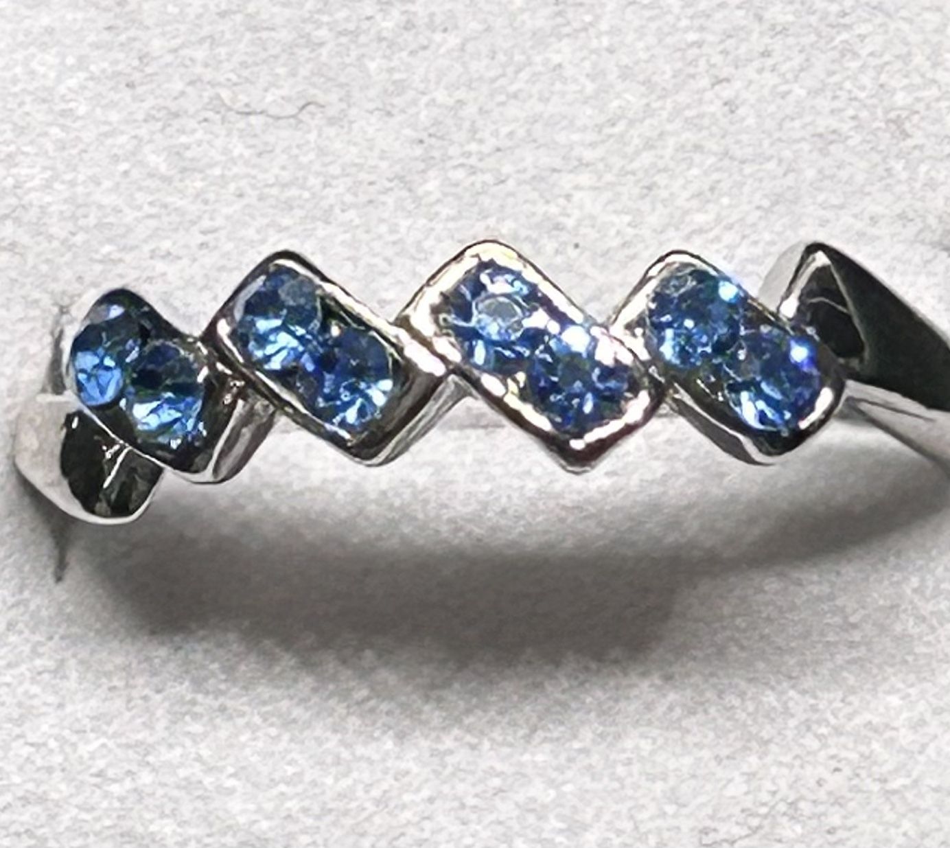 Lovely Silver Tone Ring w/ Stunning Blue Sapphire Color Stones
