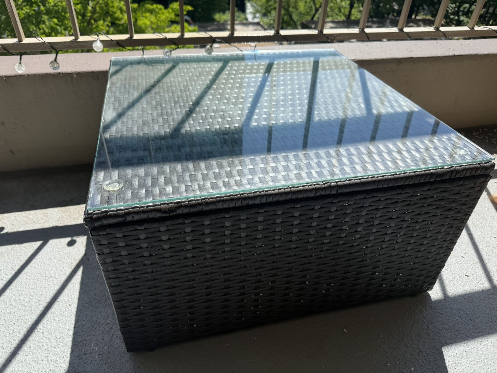 Easy clean glass table for outdoors. Great for patios/balconies. Lightweight.