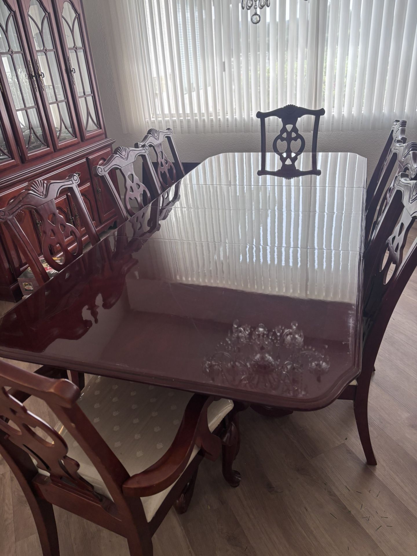 Traditional style, seating for 8. Cushions still have manufacturers plastic on them.