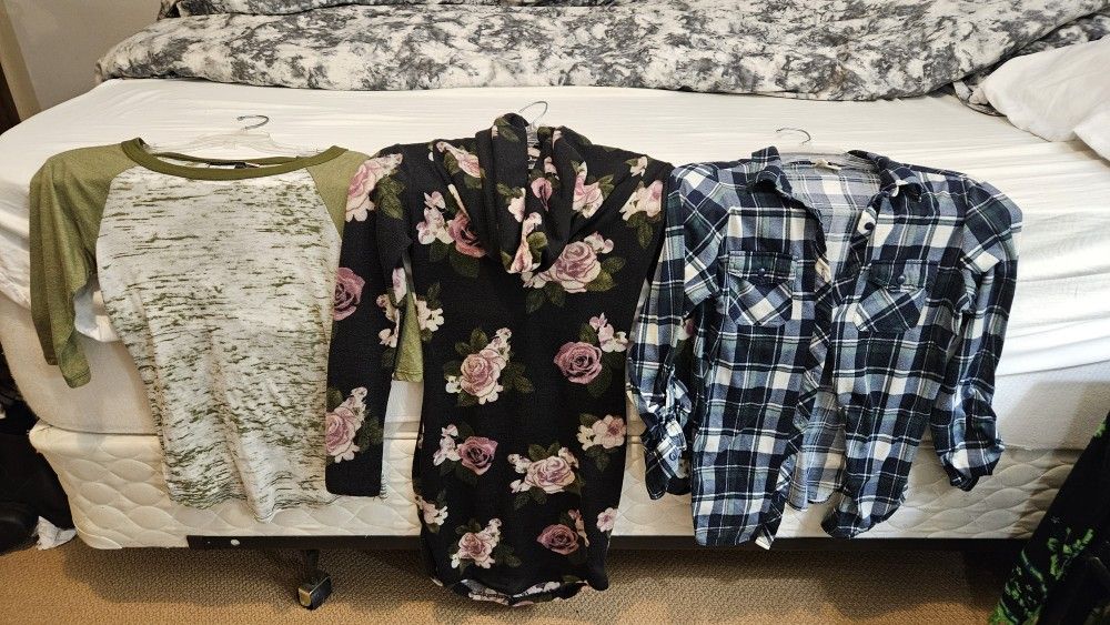 Two Fashion Tops and One dress but could be worn as a sweater depending on what you prefer! The two tops are lightly used and the dress was washed not worn! Non smoker and no pets!