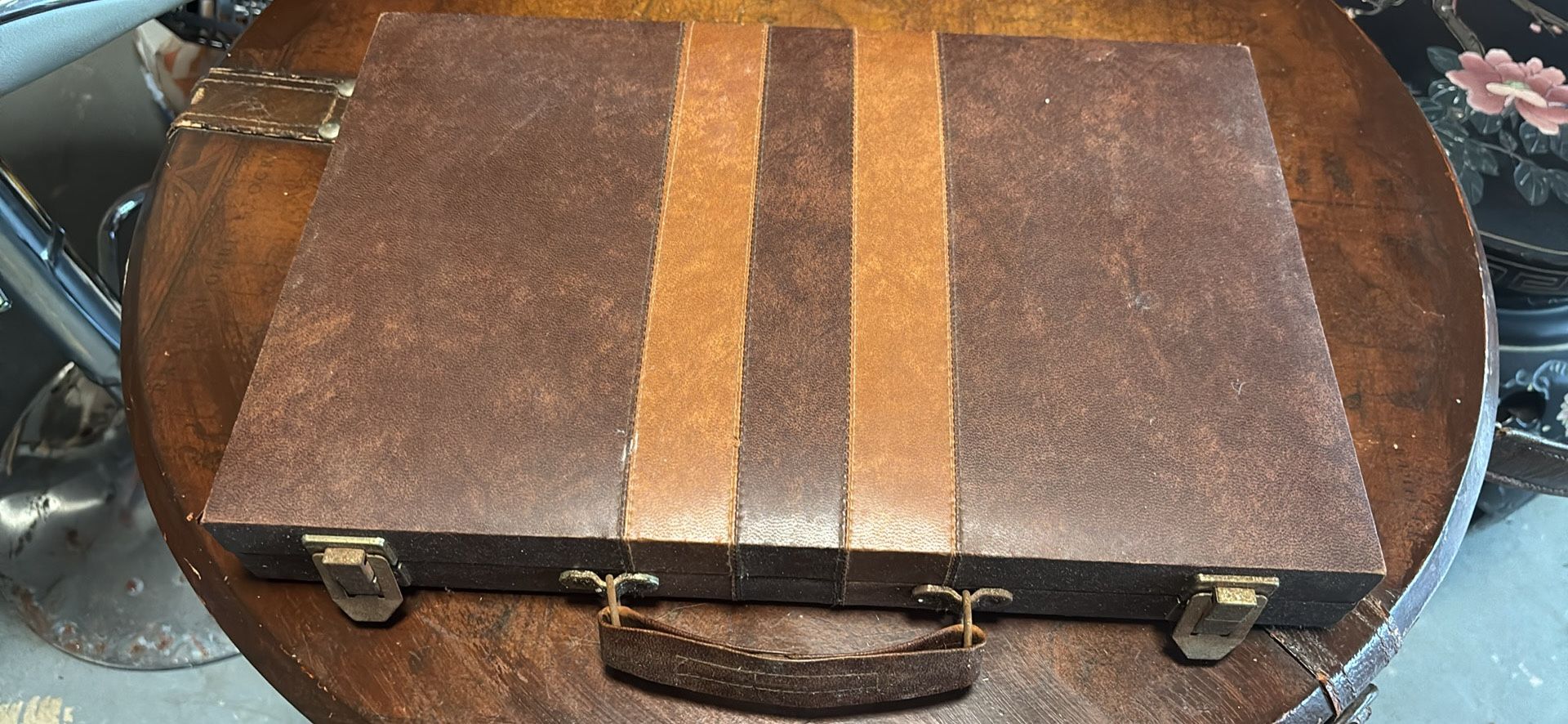 Vintage ?Backgammon Set , In A Traveling Leather Case