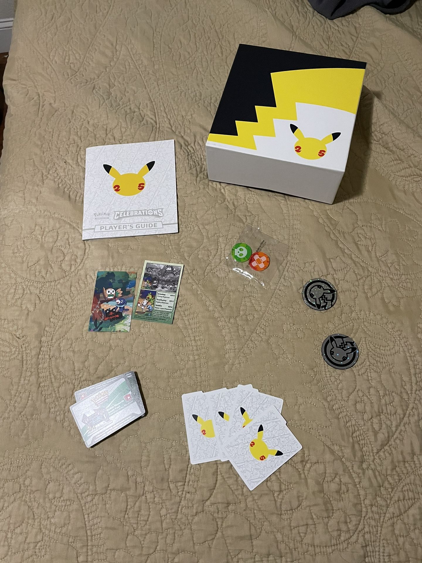 25 code cards, box, 4 chips, 4 sleeve cards and player guide And what you see in photo no Pokemon cards