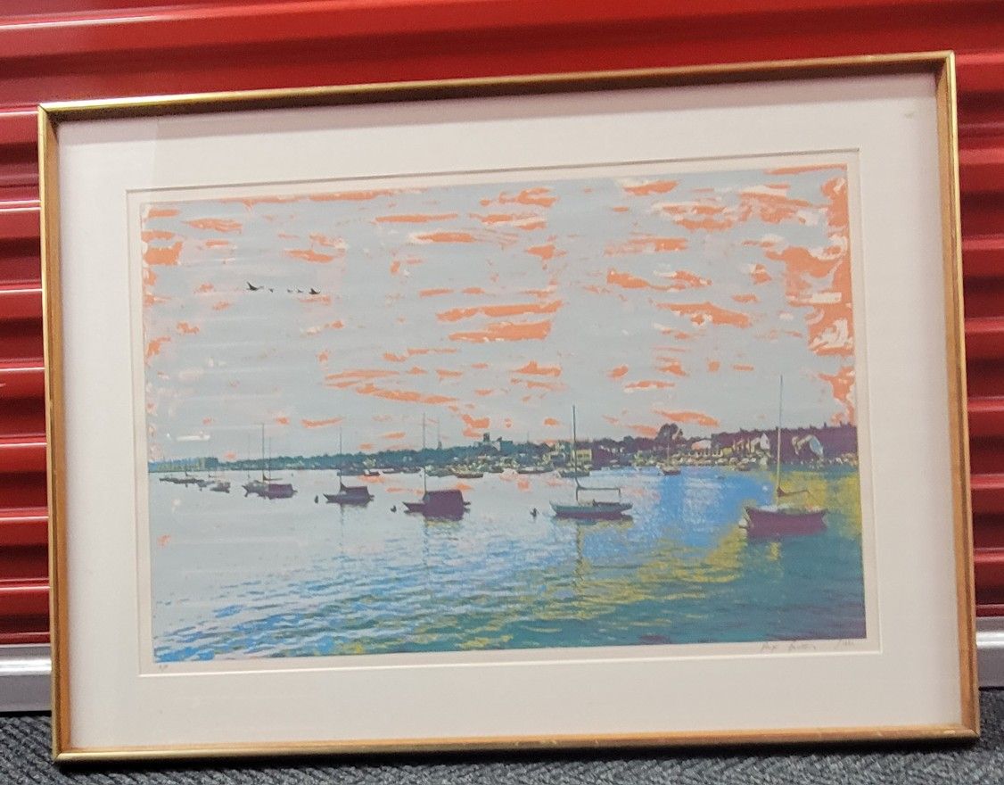 MAX EPSTEIN. 1980 - " ANCHORED FLOTILLA DAYS GONE BY " SCREENPRINT ( A.P. ) ARTIST PROOF FRAMED