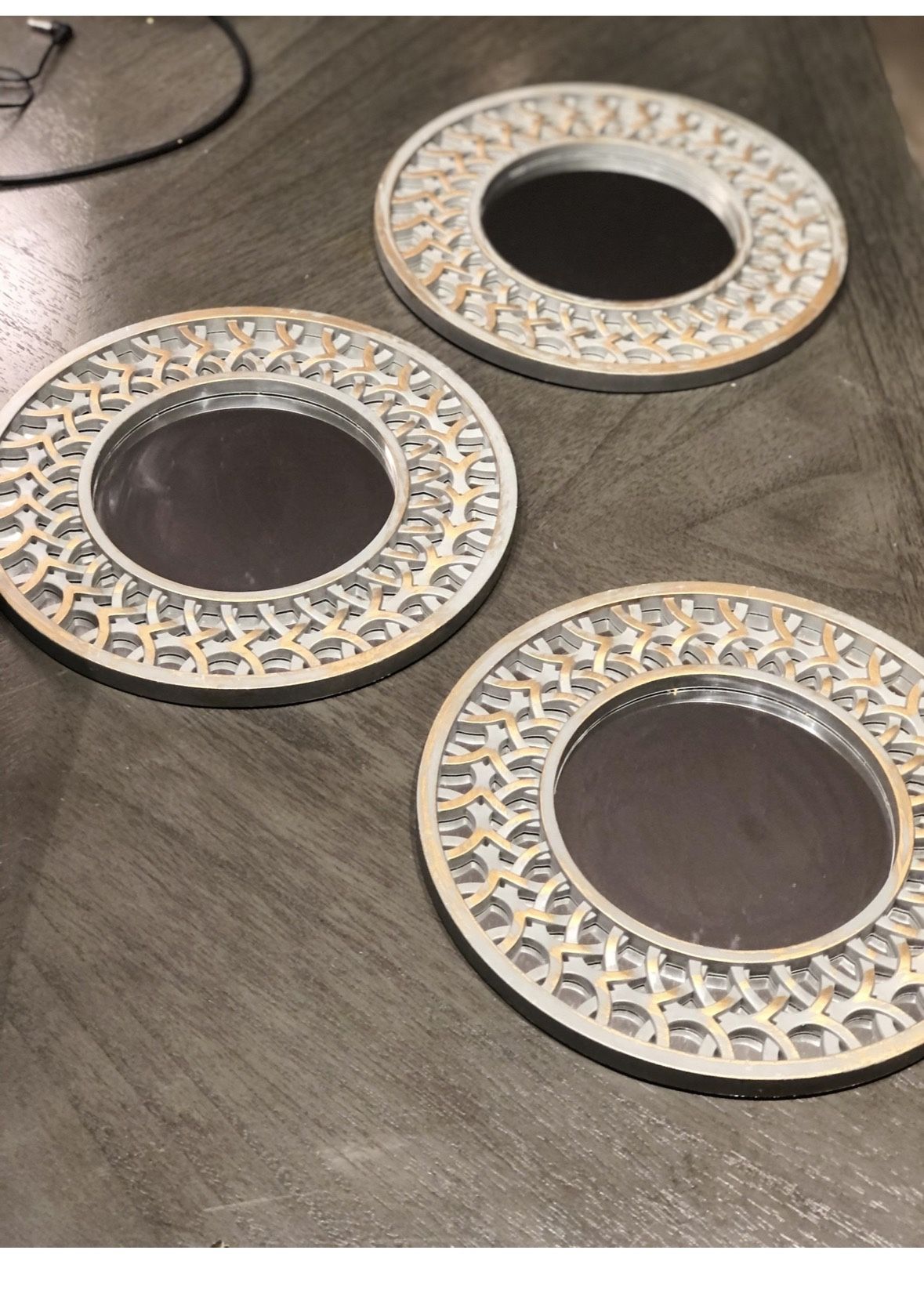 Set of 3 charming decorative accent wall mirrors. Only selling them because we’re moving. Great condition and perfect for any room.