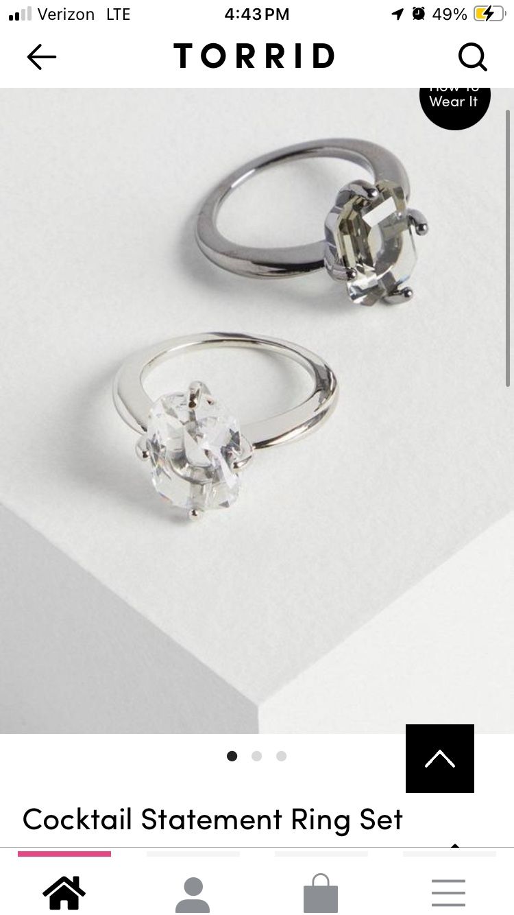 Torrid brand cocktail ring set. Clear and gray stones. Size 10. New with tags.
