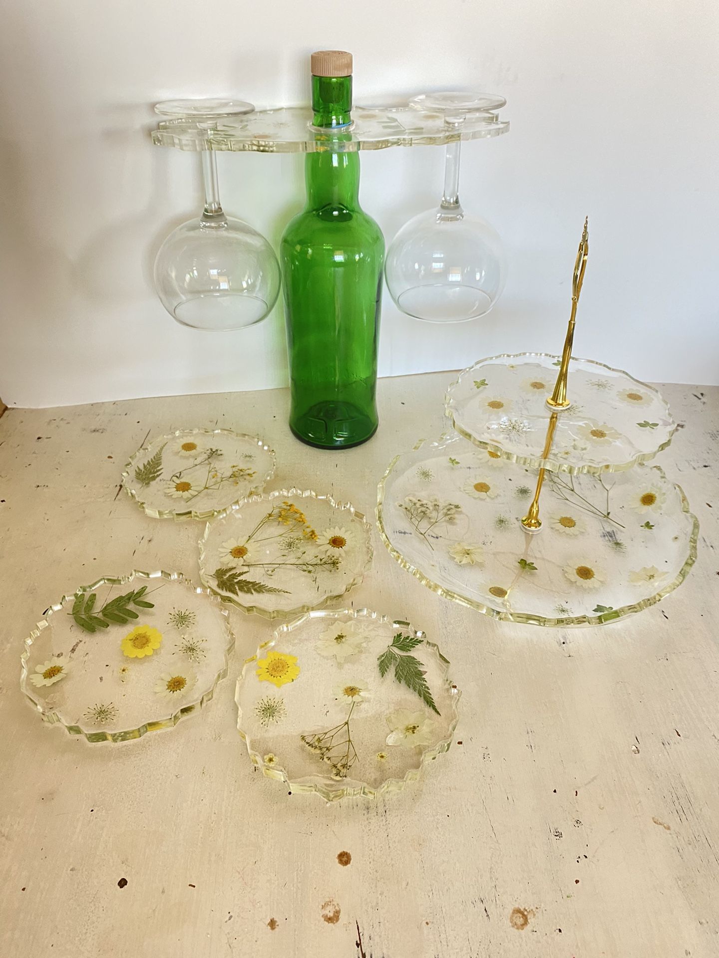 Daisy Flowers Fern Greenery Coaster Wine Dessert Tray Stand