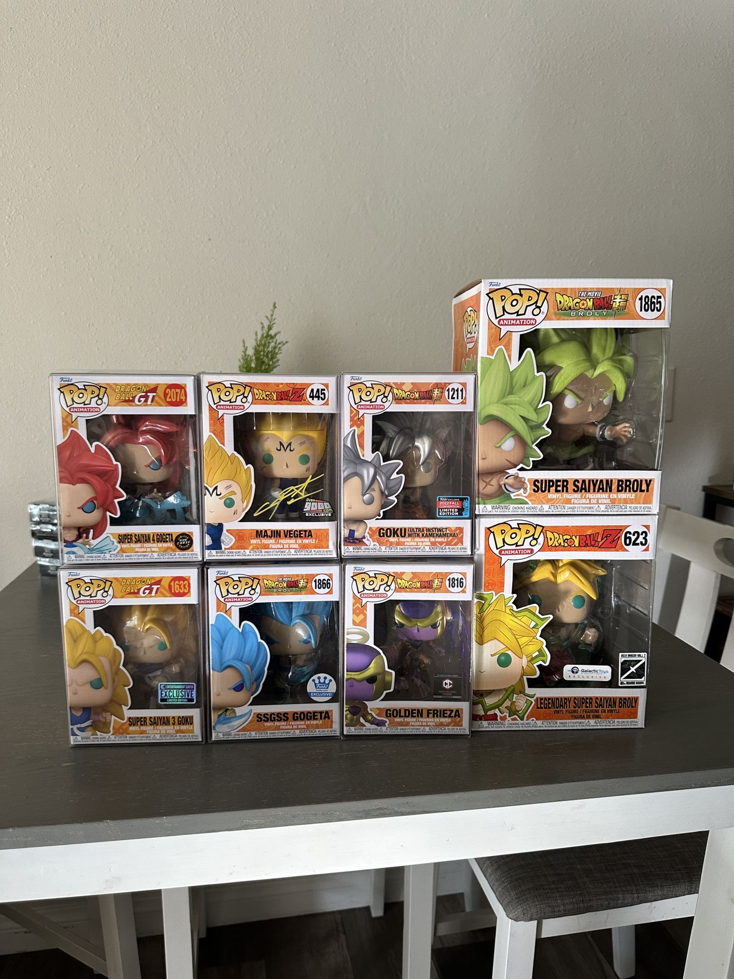 SSJ 4 Gogeta $40 SSJ 3 Goku $20 Majin Vegeta (signed by Christopher Sabat) $100 SSGSS GOGETA $20 Goku UI $20 Golden frieza $20 Super saiyan broly $50 Legendary super saiyan broly $70 Or take all for $300
