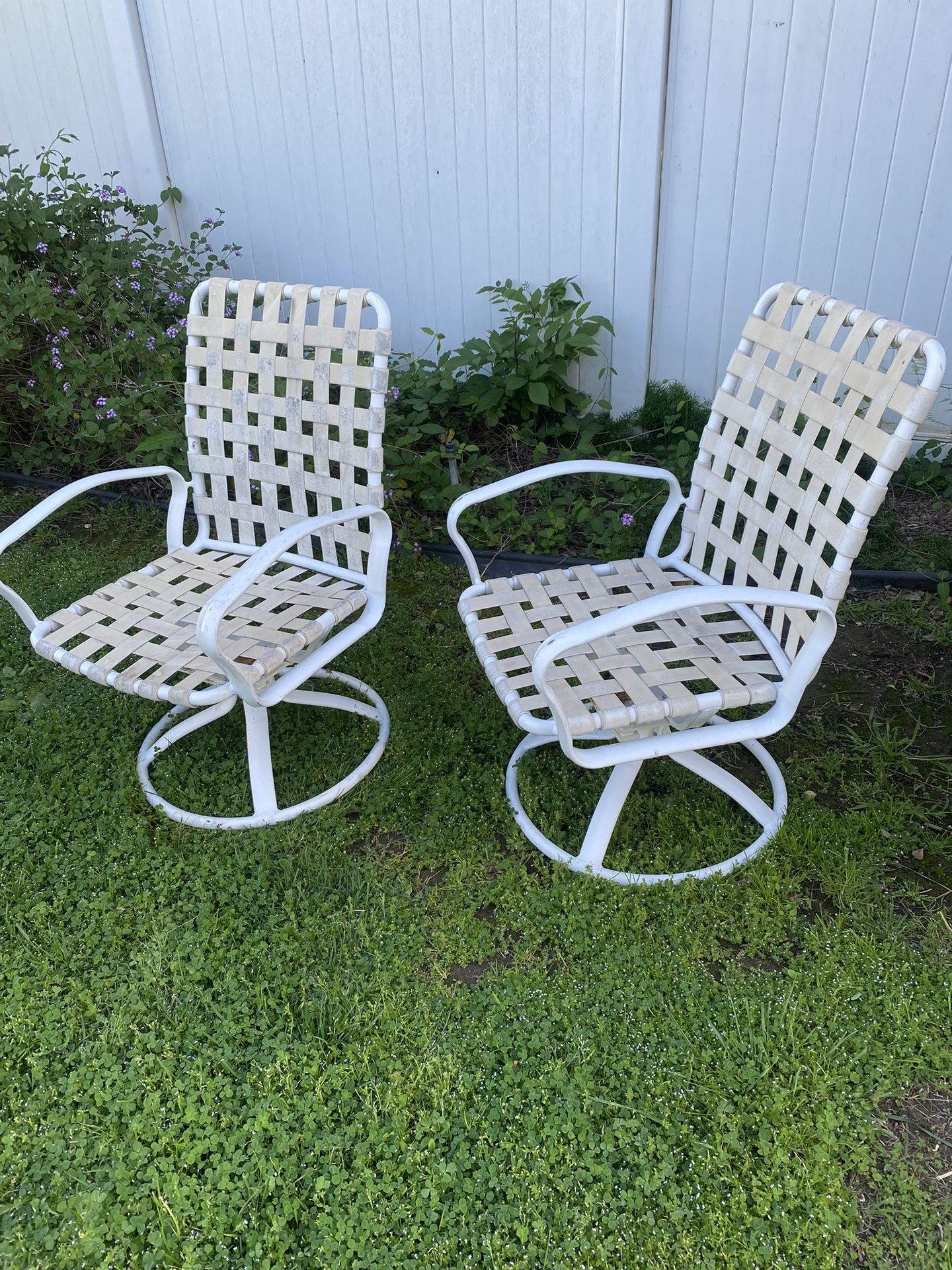 Two White Swivel Patio Chairs