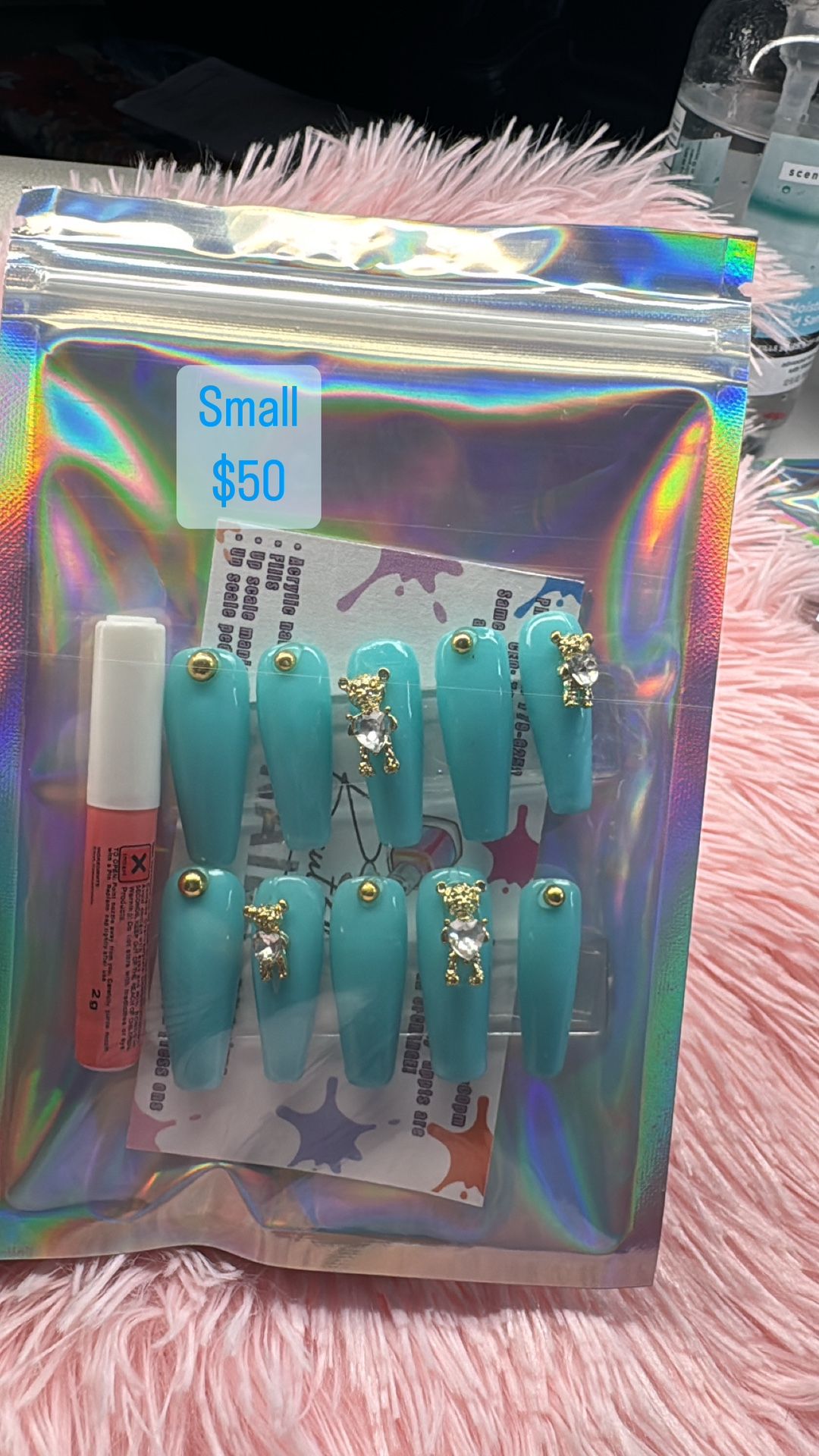 Hi I’m an mke nail tech I customize acrylic press Ons and I have them on hand prices and sizes are on each package I also offer same day service with a rush fee of $20 I do pre-orders with an non refundable deposit of $25-$50