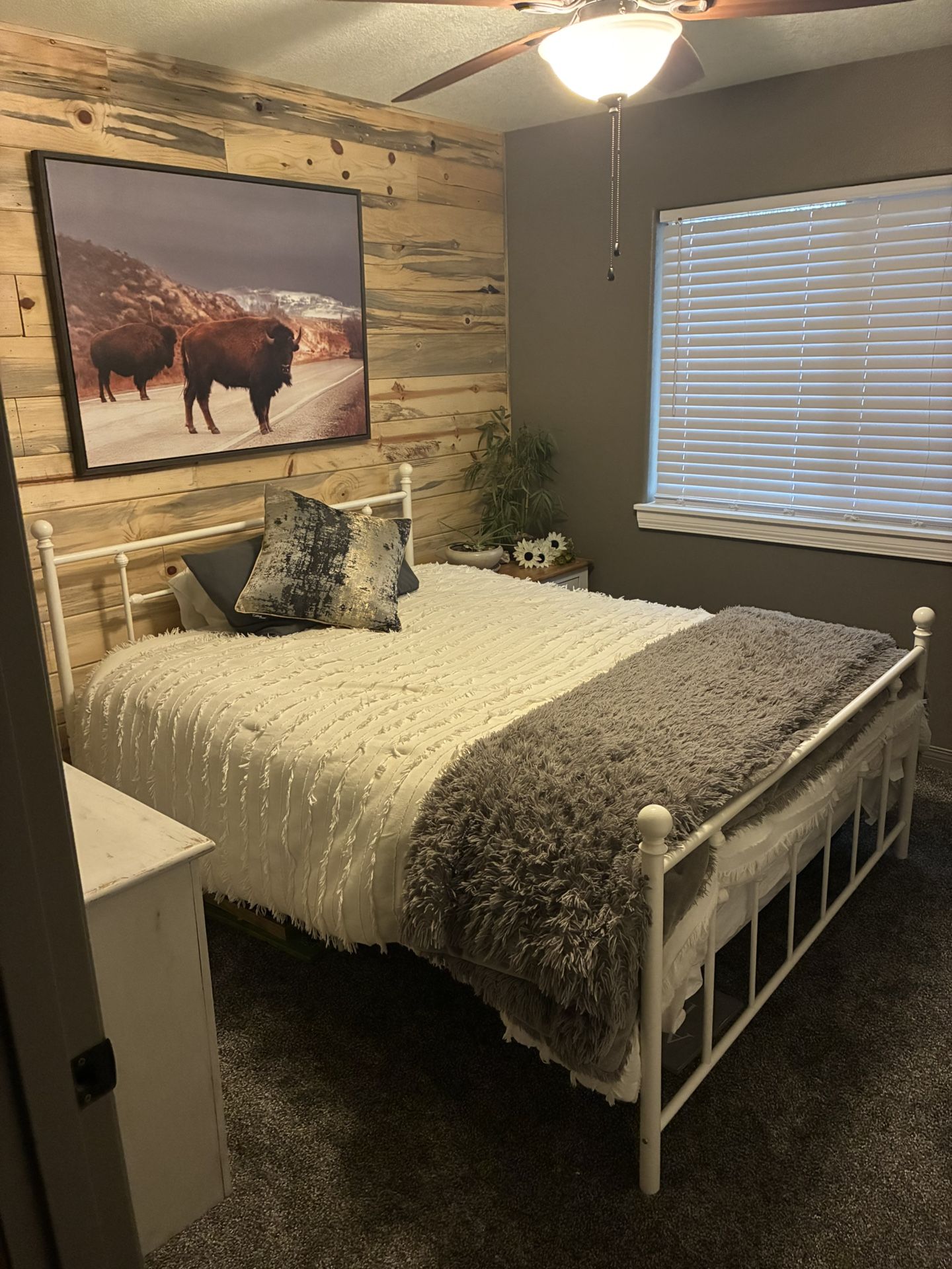 We are converting our spare back bedroom into an office space and have a bedroom set we are no longer needing. The bed frame is made of metal, very solid in great condition!! The Mattress is not included.. The dresser and night stand are made from solid wood and have served us well.. We are a non smoking home.. Here are the dimensions, Thanks.. Dresser: 51”(W) x 30”(H) x 17 1/2”(D) Night stand: 25 1/2”(W) x 24”(H) x 17 1/2” (D)