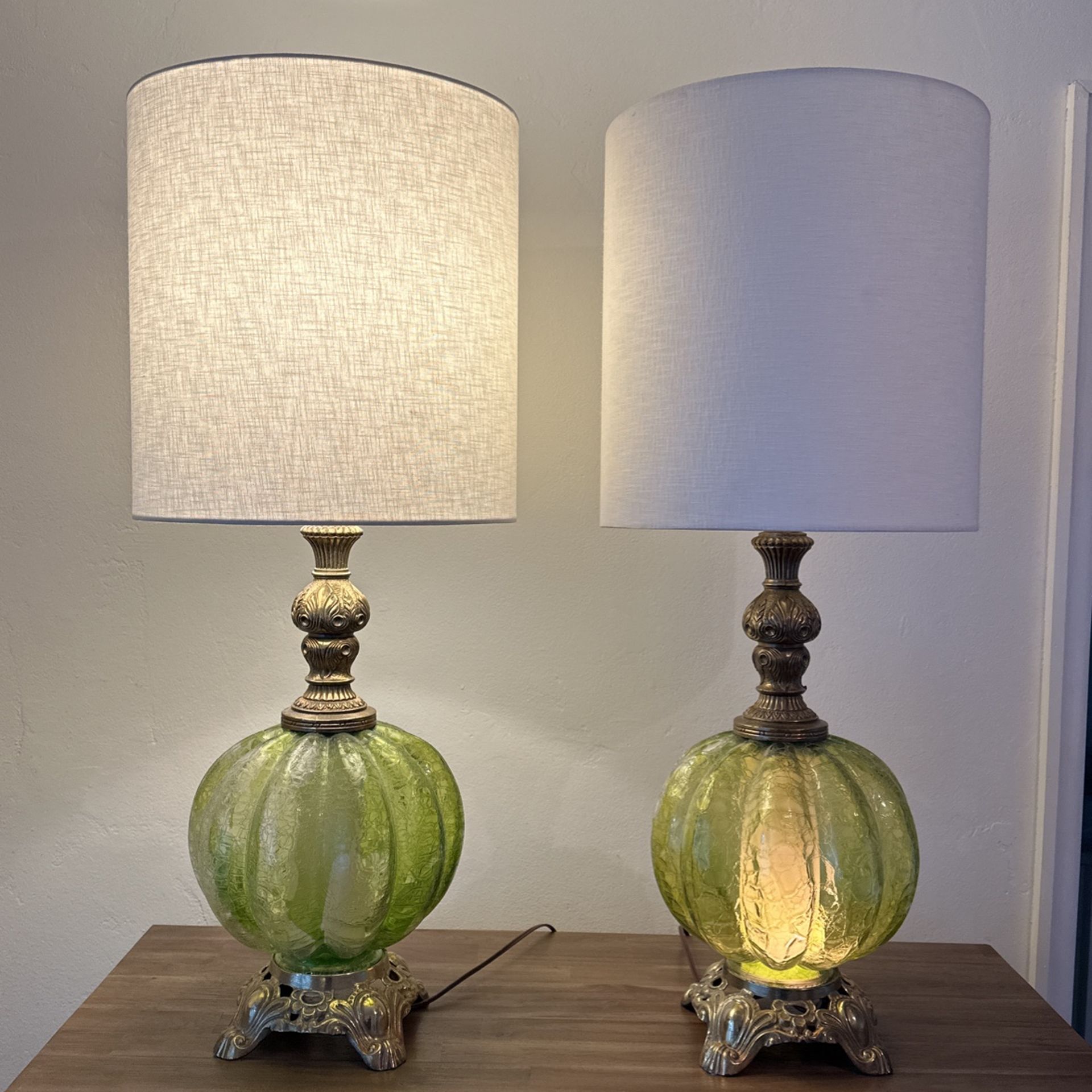 Gorgeous Mid-century Green/brass Lamps Vintage