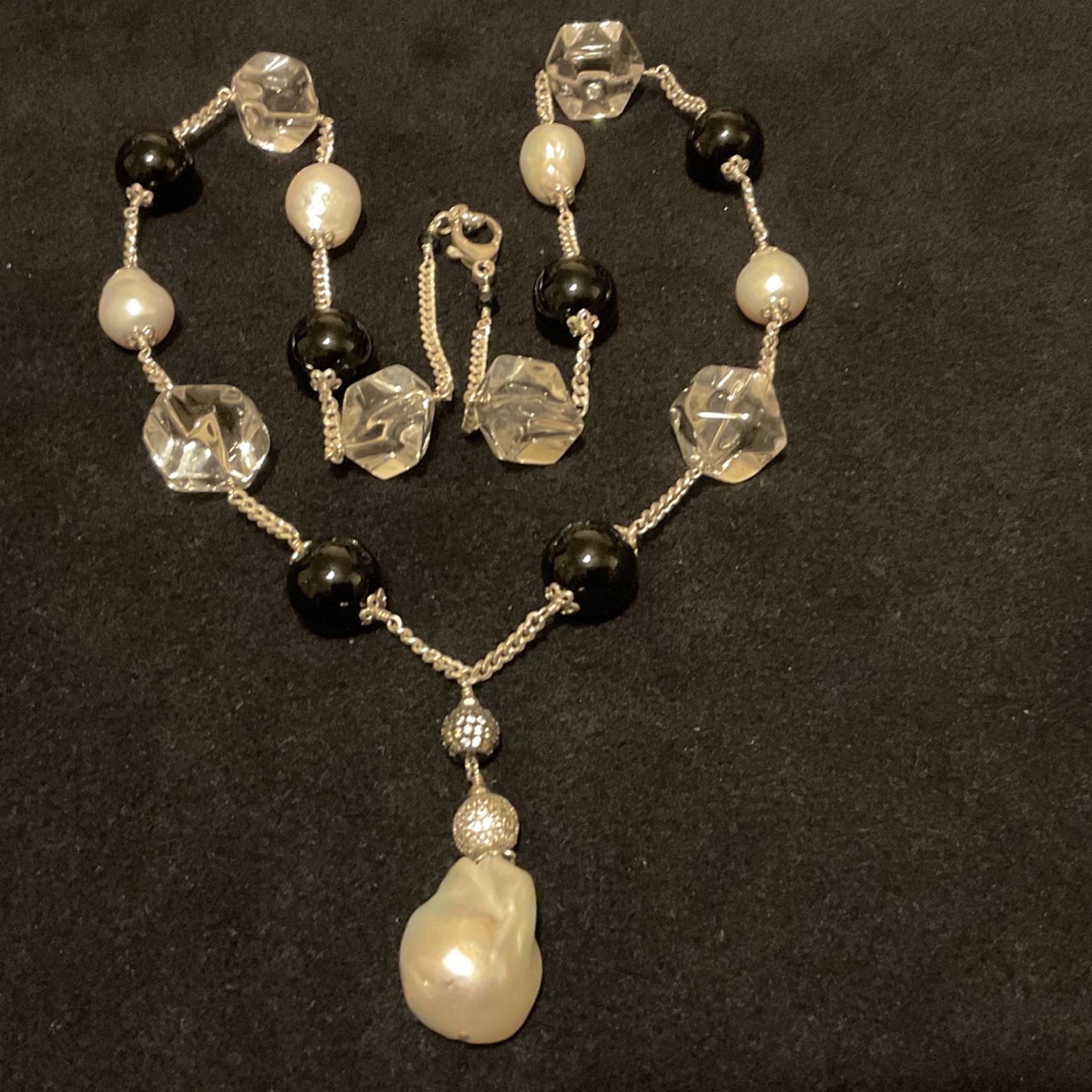 28”Sterling Silver Necklace With Genuine Pearls,crystals,glass Stones, Etc..