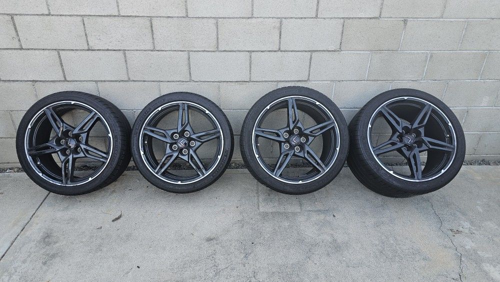 Complete set of 4 Corvette C8 wheels and Michelin Pilot Sport 4S tires. Staggered setup has 245/35 ZR 19 for the front and 305/30 ZR 20 for the rear. Wheels are black with a cool machined lip. These are from 2022 c8 corvette. Tires have good tread remaining, I removed these on February 23, 2026. Rims and Tires have 7,640 miles on them. I'm selling because I upgraded to a different set. Nothing wrong with this set at all. (NO scratches or curb rash, NO uneven tire wear) Includes TPMS sensors. Had the balance checked when I took them off. They are ready to mount on your car! If ad is up. They are still available. Pick up only in N. Long Beach (near 91 and Cherry ave) $1,000 obo