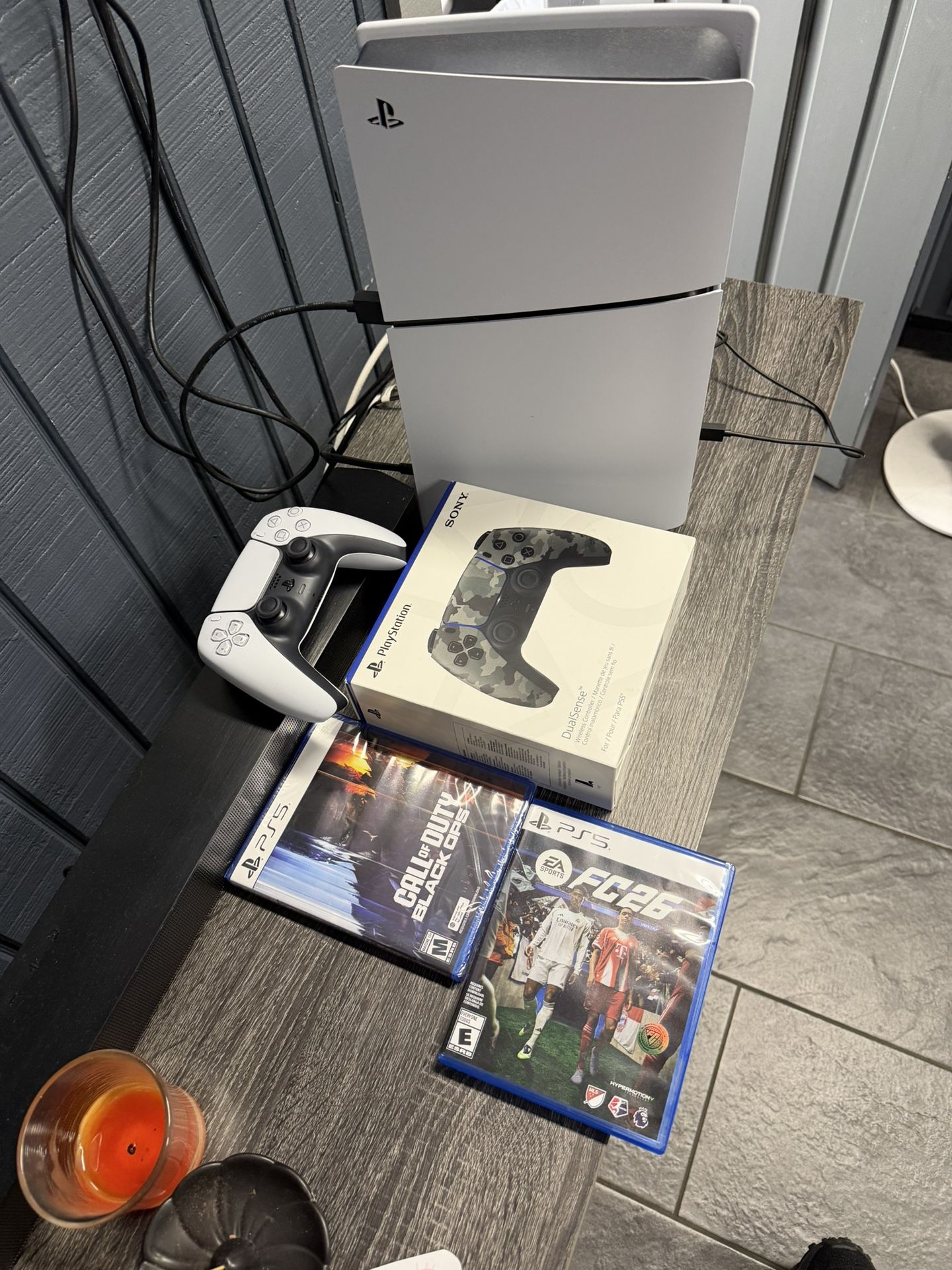 Like new!!! Bought last month Used a few days Comes with 1 camo New Controller! Unopened And 2 games. FC26 used 4-5days Call of Duty black ops 7 unopened!!! Asking $550