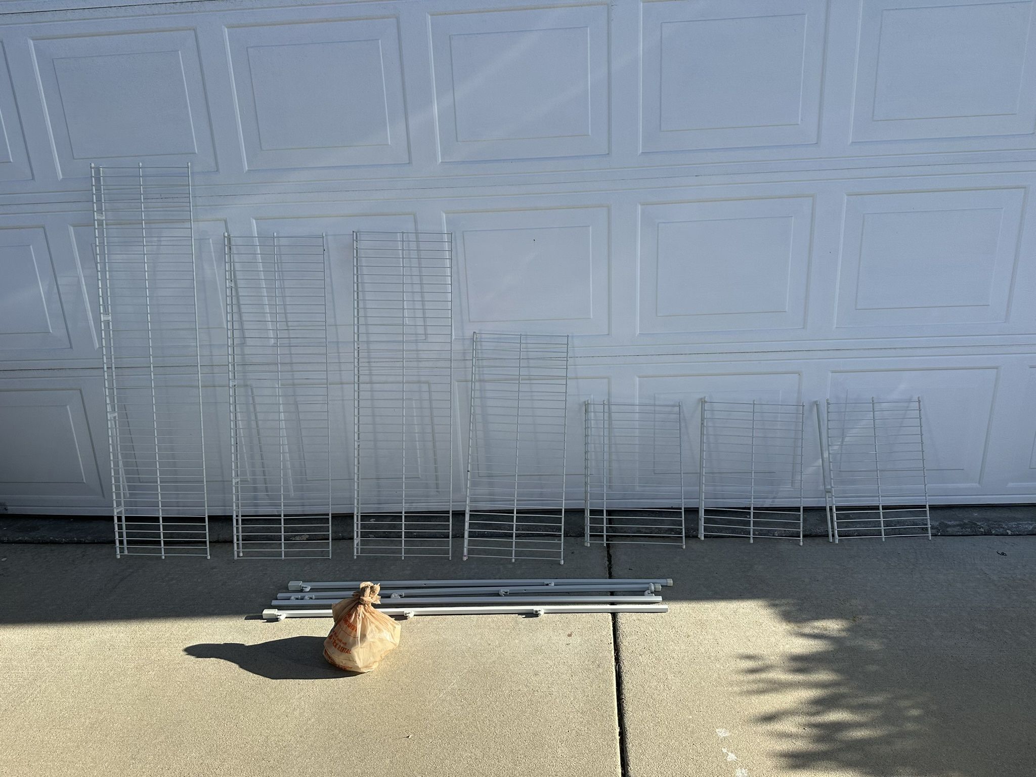 Includes 7 shelves, 2 support poles, nails, and 6 anchors Can deliver in OC