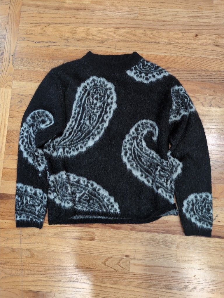 424 black and white designed sweater Size L Black and front sides and tags shown Price is negotiable