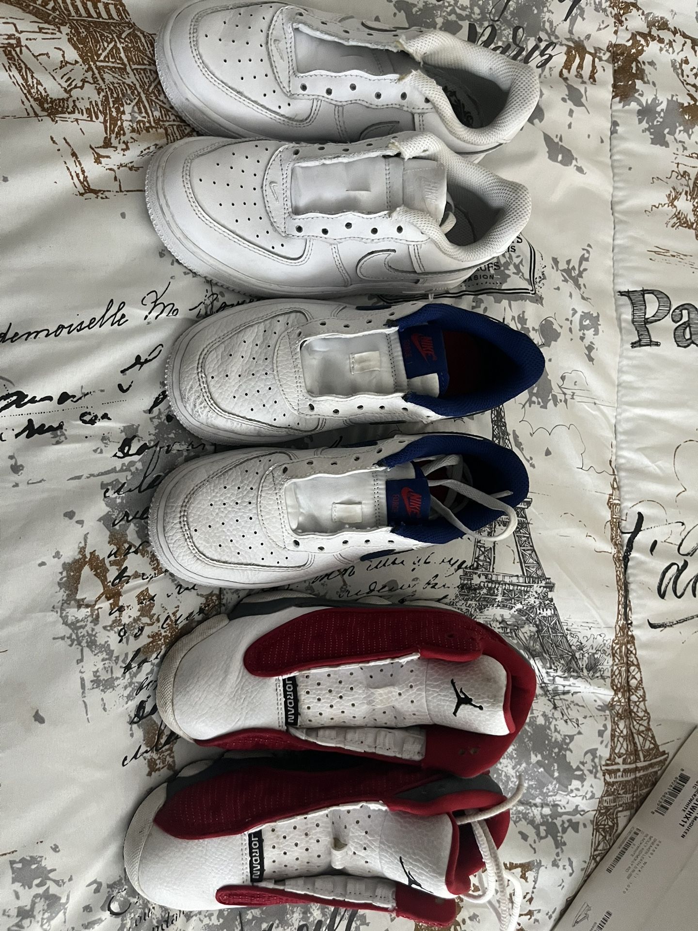 Air Force 1s size 13c Jordan’s size 12c 1 pair for $30 2 pair for $50 ALL 3 pair for $70. Good condition