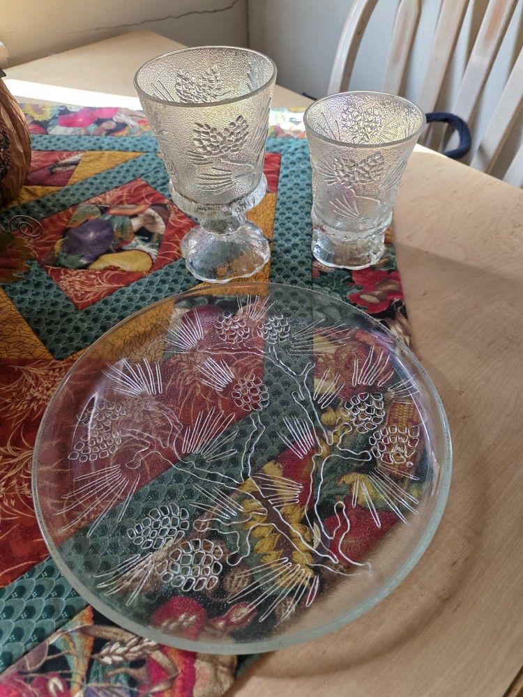 1981 Tiara Indian glass clear ponderosa pine 8 dinner plates 7 large goblets 8 small goblets