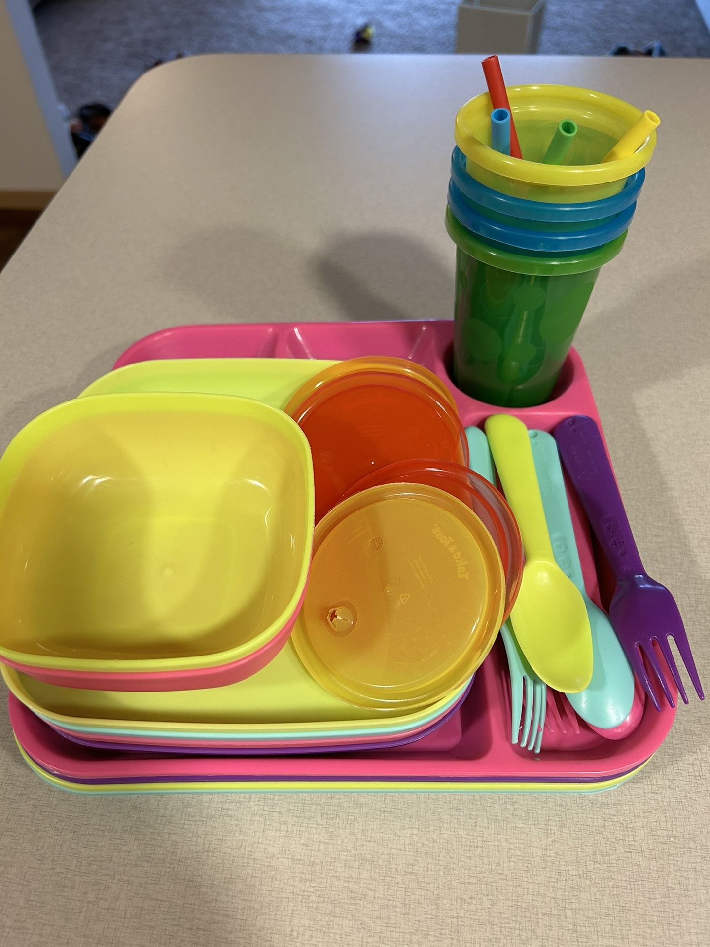 toddler plates bowls utensils sippy cups w/straws *over supply, barely used