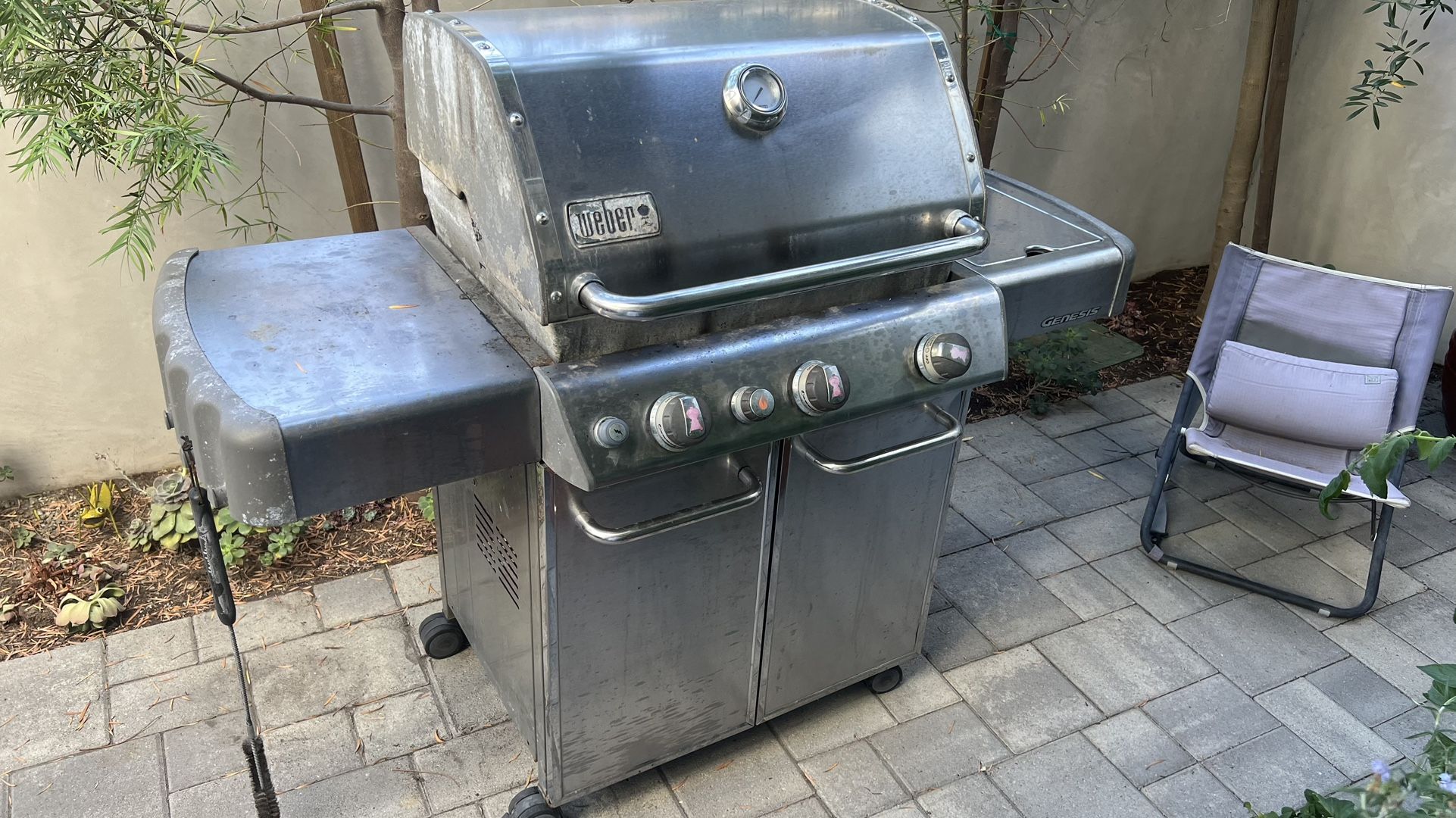 Well used but works great! Additional external burner allows for maximum food prep. Stainless steel. Needs cleaning but otherwise ready to go. Propane tank not included. Buyer picks up in Studio City and loads after payment. Exact cash or Venmo only.