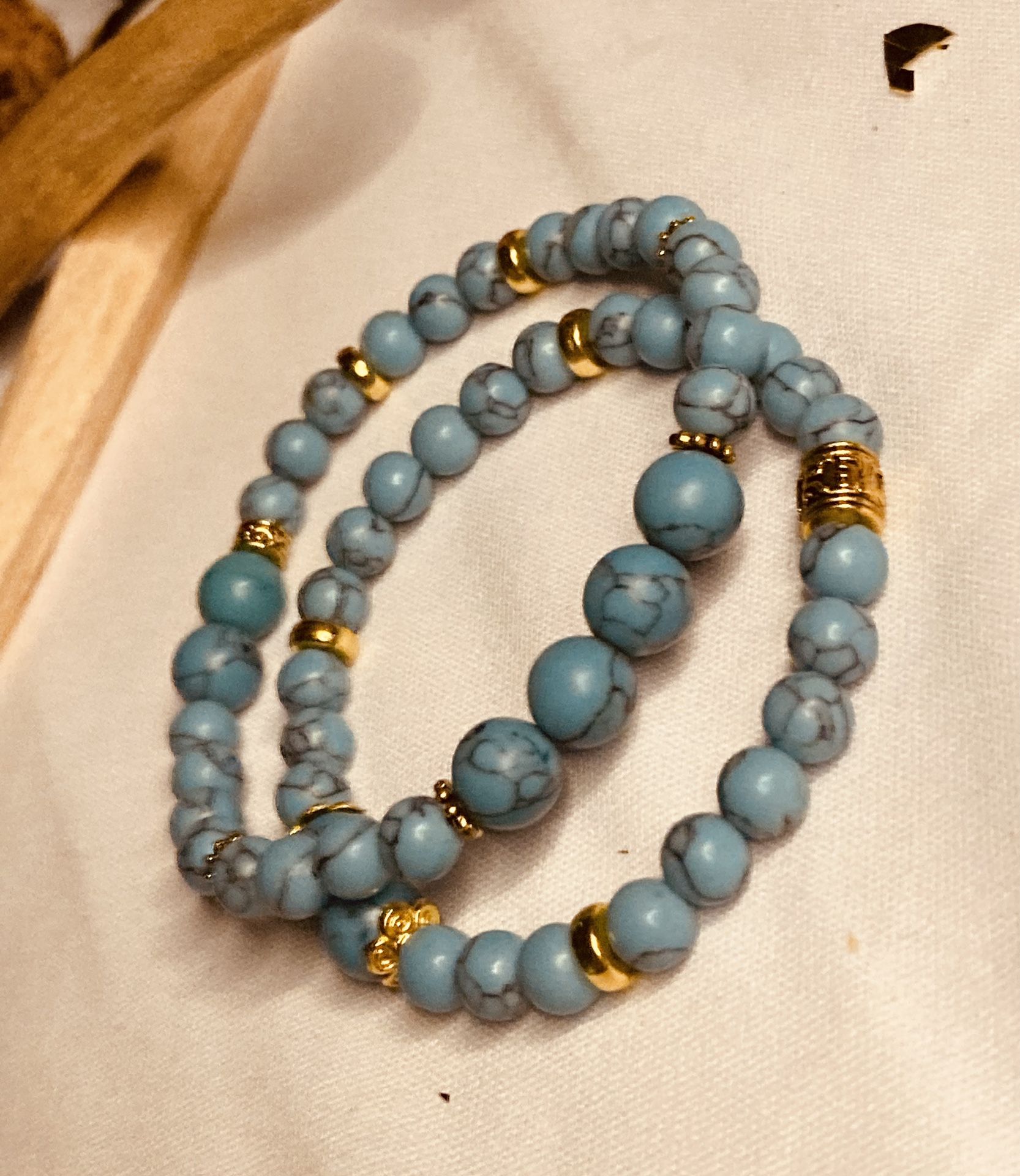 2pc turquoise stretch bracelet made to fit most wrist small and medium perfect bracelet for any style
