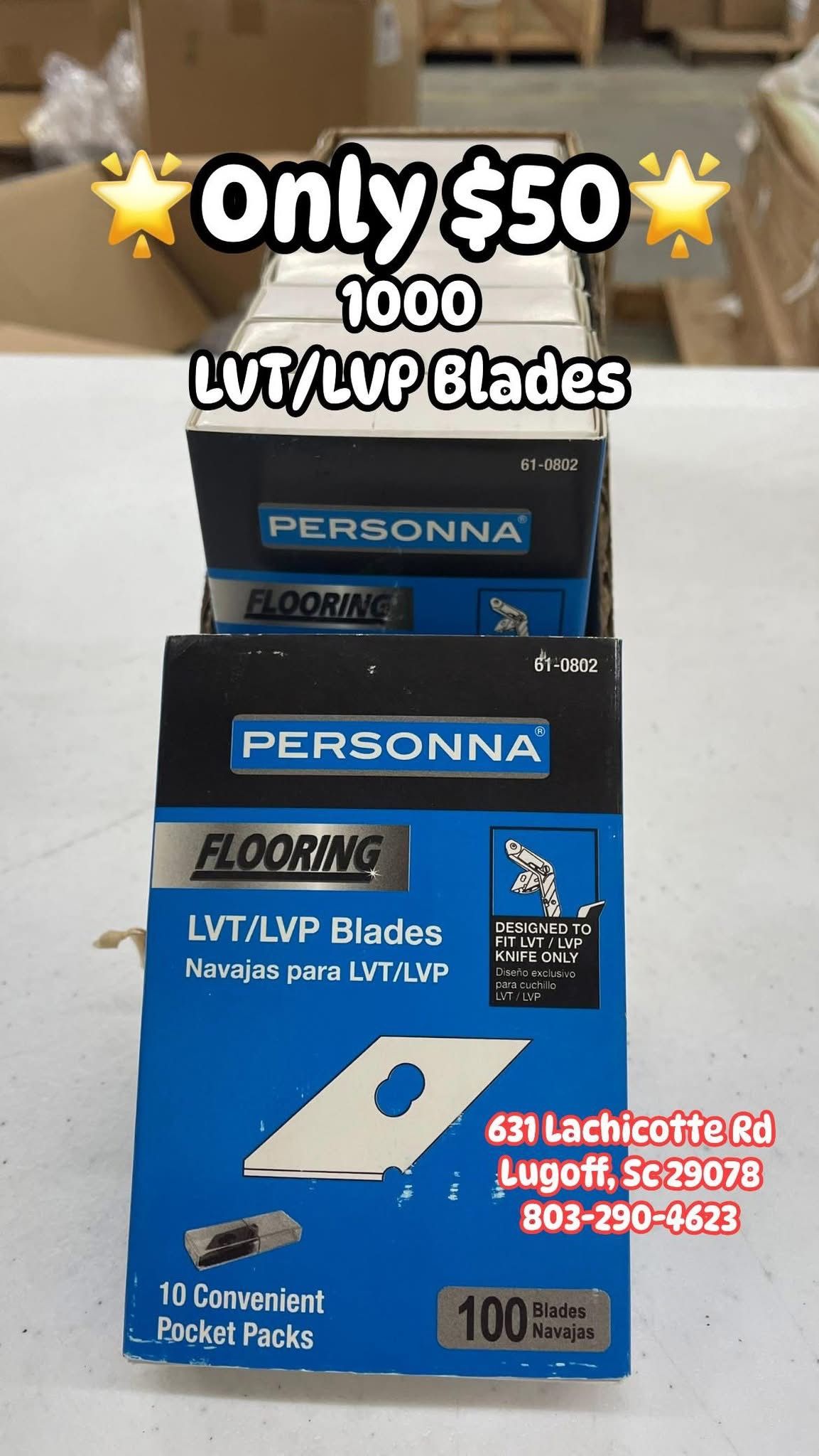 πͺ $50 New Case of 10 LVT/LVP Knife Replacement Blades π (1000 Total Blades - 100 Blades per Box) ποΈ Pick up by appointment! π Call us at (contact info removed) π Located at 631 Lachicotte Rd, Lugoff, SC 29078 Financing Available: π΅ Financing is available on purchase totals of $200+! Text 36166 to 48078 to apply now! Product Details: This case includes 10 boxes of high-quality replacement blades for your LVT/LVP knife, providing a total of 1000 blades. Made from high carbon steel, these blades ensure a long-lasting edge for your flooring projects. Key Features: β’ π Two Positions: For scoring or cutting β’ π¦ Convenient Pocket Packs: Each box contains 10 blades β’ βοΈ Designed for LVT/LVP Knives Only: Perfect fit for reliable performance Donβt miss out on this essential supply for your flooring needs! πβ¨