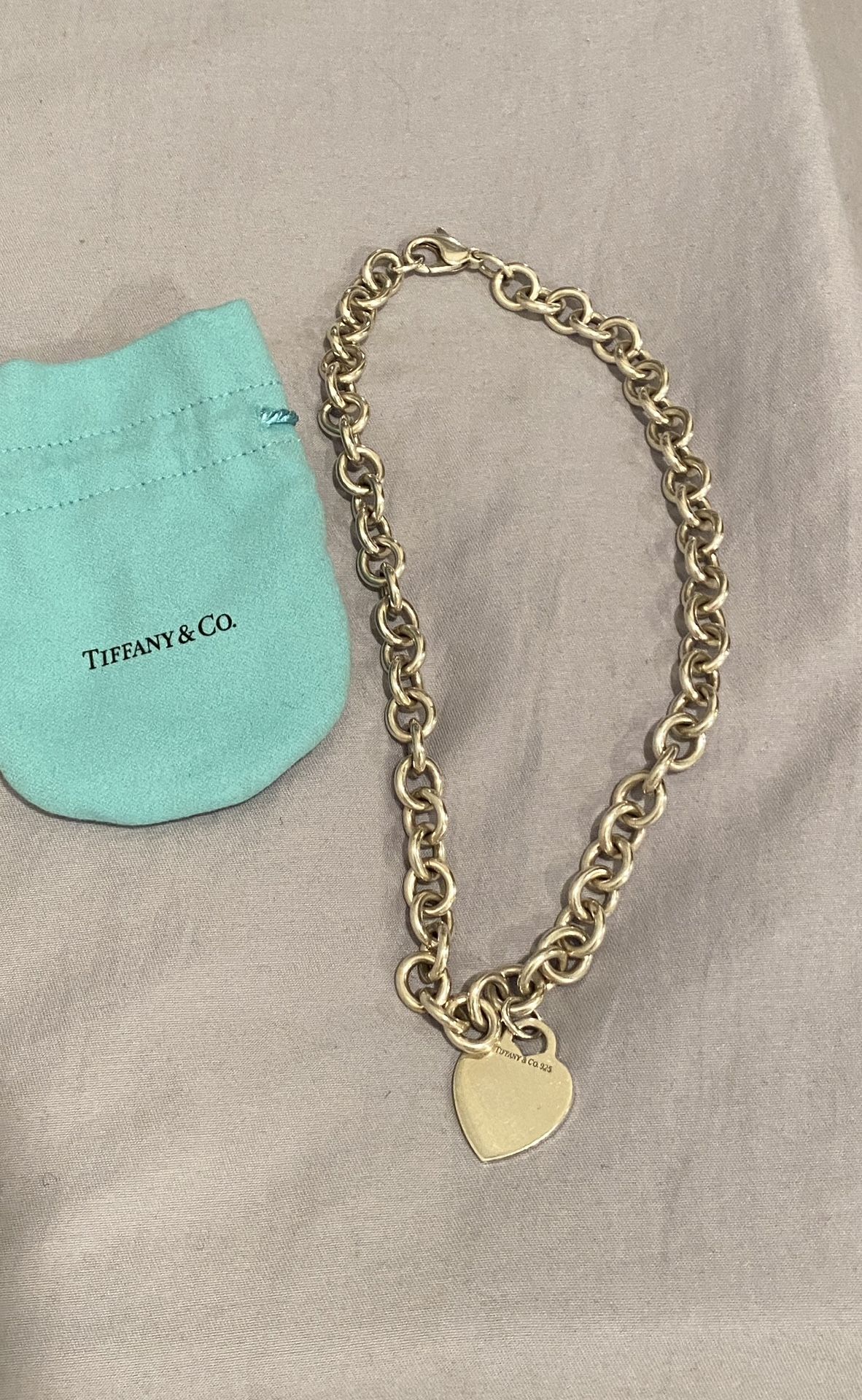 100% authentic Tiffany & Co 16” sterling silver heart tag necklace. Fully hallmarked as shown in pictures. Original bag included.