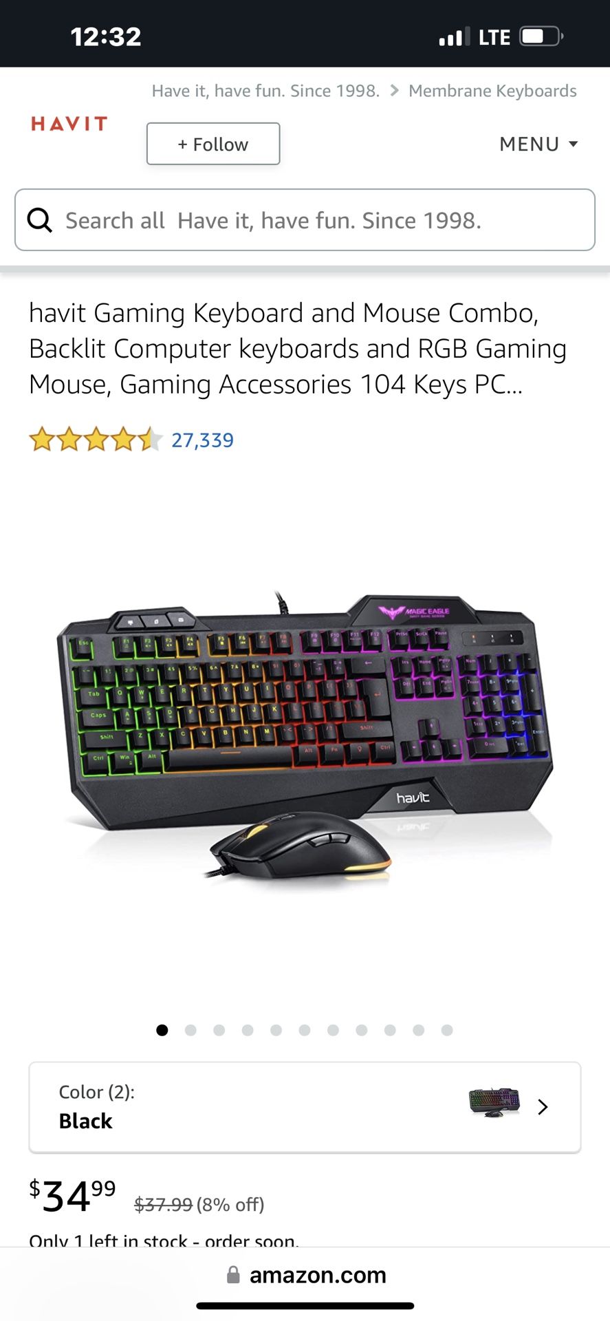 PC Gaming Keyboard Supported operating systems range from Windows 2000 / 2003 / XP / Vista / Win7 / Win8 /Win10 (Please Note: the multimedia keys just work for files on Windows) Stable Bottom Design: Under the keyboard, there are two rubberized holders to prevent it from slide. Gaming Mouse Durable braided cord. Micro switches provide crisp, firm clicks. Plug-and-play, no additional software of firmware is required. Gaming Mouse and Keyboard—Including a 7 kinds of RGB Gaming Mouse and a Rainbow Backlit Gaming Keyboard. Rainbow backlights takes you into a pretty cool gaming atmosphere quickly Note : 1. The rainbow colors of the keyboard lights cannot be changed, as it's presetting, but the mouse's light color can be changed by holding and pressing left click + DPI button. 2. This “Backlit keyboard” is associated with membrane keyboard where all keys are same membrane and backlit is like a central light shared by all. The bold, bright characters make the keys easier to read—even if you have less than perfect vision. 3. This wired keyboard is not recommend to use on Mac OS system as it doesn't completely compatible. Features & details "How to get a budget keyboard and mouse combo with a professional-grade silky feeling?" We noticed our customers always ask this question, in order to solve this problem, HAVIT launched the decent gaming accessories. This combo consists of a gaming keyboard and a RGB mouse, giving our customers an incredible gaming and typing experience. Gaming keyboard with gentle backlight: This keyboard features an elegant backlight that won’t distract your attention compared to other computer keyboards, making you immersed in current work and games. we also configured breathing mode and brightness adjustment. Comfortable typing and gaming feeling: Keyboard’s key caps are made of ABS (high quality plastic material). Unlike other USB keyboards, our key caps are suitable for long-time use; 19 non-conflict keys and convenient to switch between arrow keys and WASD keys, letting you to freely exchange between leisure time and work. RGB gaming mouse: Our mouse use professional-level adjustable DPI settings ranging from (contact info removed) for different types of games, which require native games supporting the keyboard and mouse combo; Besides, the cool adjustable RGB lighting will also bring better gaming experience. and we added extra programmable functions, you can set all mouse keys. Wide Compatibility: This keyboard and mouse kit supports Windows 2000/2003/XP/Vista/ Win7/Win8/Win10. We sincerely hope you can enjoy the convenience and fun of our products. Meanwhile, any problem please feel free to contact us, we will reply and solve your concerns ASAP.