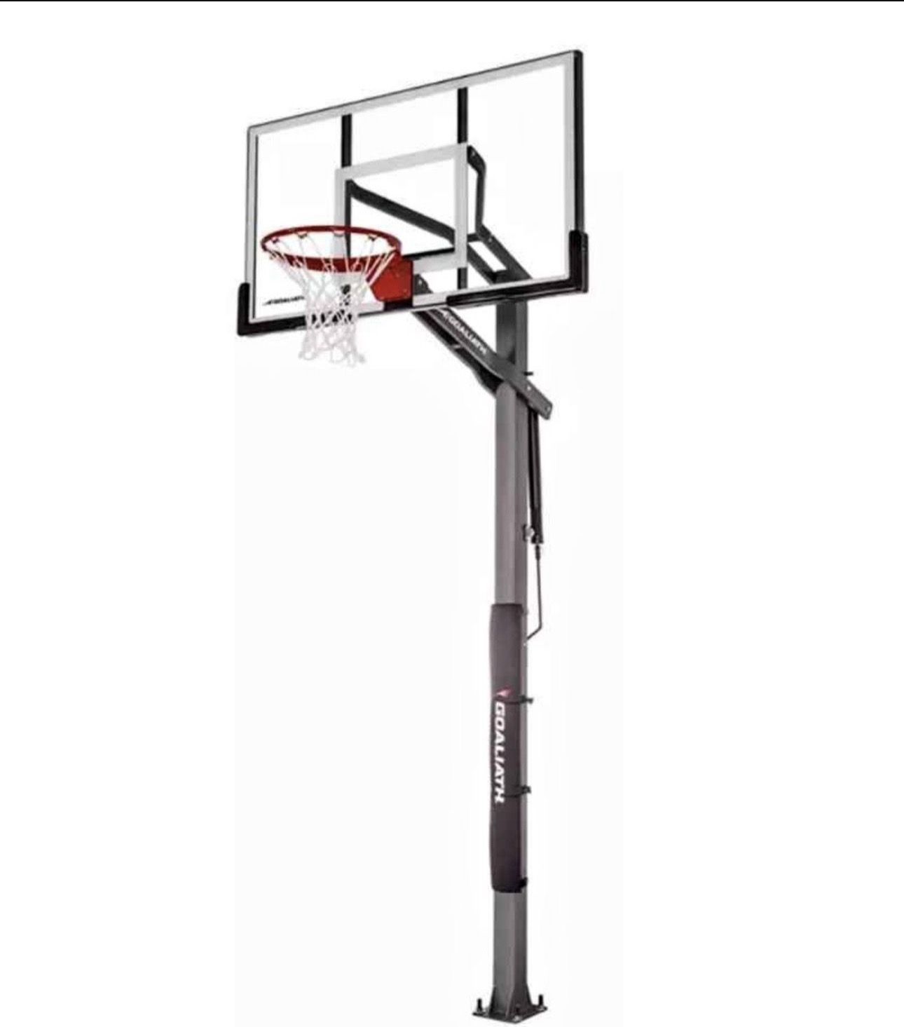 New open box Elevate your home court experience with the Goaliath 60" Ignite In-Ground Basketball Hoop. This robust system features a tempered glass backboard and pro-style flex rim, ensuring durability for intense play. With easy height adjustments and a rock-solid anchor system, this hoop is built to grow with your game and withstand the elements, promising endless hours of fun. Light up your home court with the Goaliath® 60" Ignite In-Ground Basketball Hoop. This in-ground hoop features a large tempered glass backboard, two-piece pole, and pre-assembled pro-style flex rim for a strong and durable basketball system. Featuring new lower board arms and pole lock technology, the Ignite hoop offers increased strength and stability during aggressive play. With corrosion protection the Ignite hoop holds up to the weather and the intense pick-up game. Goaliath basketball hoops are made by the same company that manufactures Goalrilla basketball PREMIER IN-GROUND HOOP 60" tempered glass backboard with regulation-sized basketball shooting square Upgraded lower board arms and pole lock technology for increased strength and stability PREMIER IN-GROUND HOOP 60" tempered glass backboard with regulation-sized basketball shooting square Upgraded lower board arms and pole lock technology for increased strength and stability hoop YOUR HOOP GROWS WITH YOU All-steel precise height adjustment easily adjusts to accommodate playing of varying sizes Height adjusts from 7.5' to 10' hoop ANCHOR MOUNTING LETS HOOP MOVE WITH YOU Rock-solid anchor mounting offers the strength of concrete Easy leveling Unbolt and move hoop system if you move homes hoop WITHSTANDS WEATHER AND INTENSE PLAY Powder-coated steel pole for ultimate UV protection corrosion resistance pole All hardware is zinc-coated to resist corrosion to withstand weather and intense play SATISFACTION GUARANTEED 5-year limited warranty Includes backboard pads and pole pad for player protection Brand: Goaliath Style: B2256F