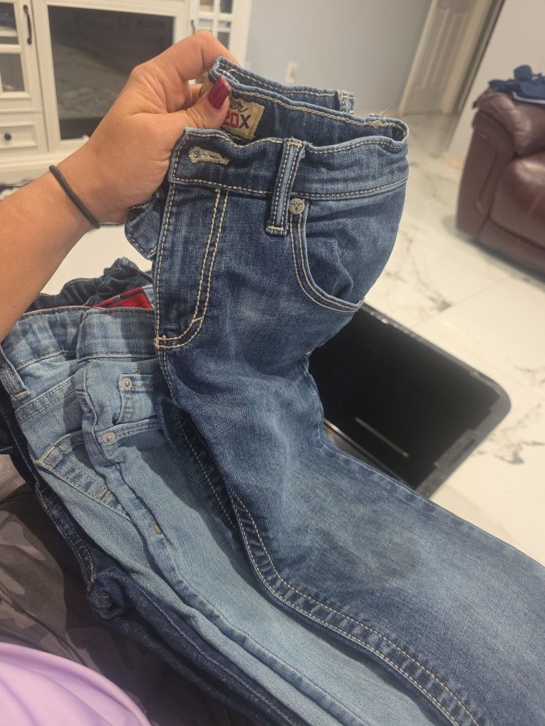 For 6 pairs of jeans sizes 10, 11 and 12. Lightly used and they are Levi's, Wrangler 20X, and Old Navy. $25 for all. I will throw in a pair of gray size 10 Jeans. Has a little damage looks like small bleach stains. They don't fit my son he's too tall if not I would not sell them.