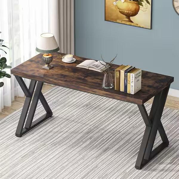 55 in. Computer Desk Brown Manufactured Wood Writing Desk with with Z-Shaped Metal Leg