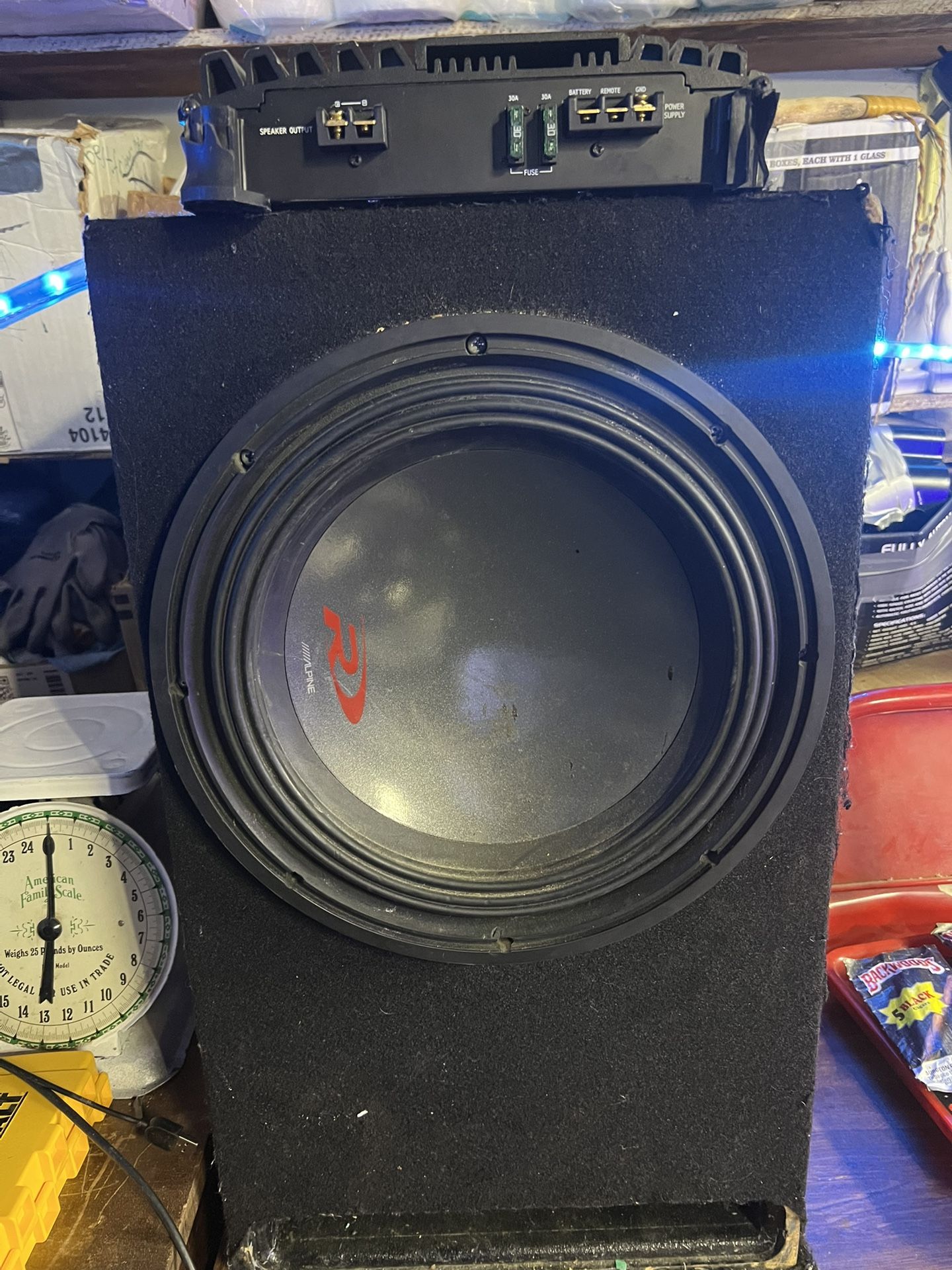 Sounds so tuff, great sound quality, easy installment, cords/wires not included hence the low ask price for this giant. Homemade box too, very well built and the gap we added at the bottom of the box is for vibration idk how it works scientifically lol but it makes it boom even better. Alpine is $60. And sub in box is $100, & when I first bought all the parts to build this to put in my my first car, I put total just barely over $500 into this jsyak, for everybody messaging me with offers of $50 and $70 for everything lmfao.🤦♂️