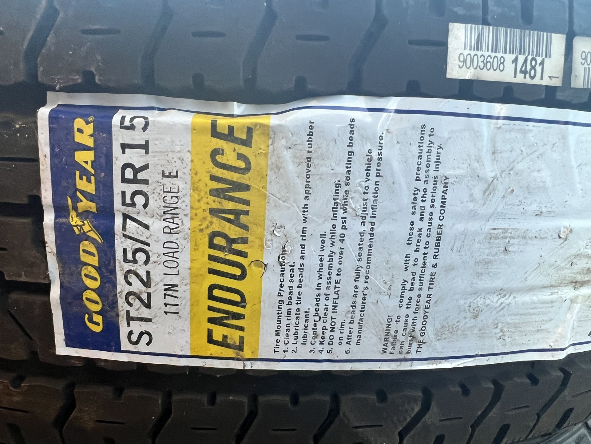 I have a new set of Goodyear endurance ST225/75R15 trailer tires. They are 10 ply and 80psi max. New and still have stickers on them. Rims are used and different colors but all 6 lug. First $500 or best offer takes them.