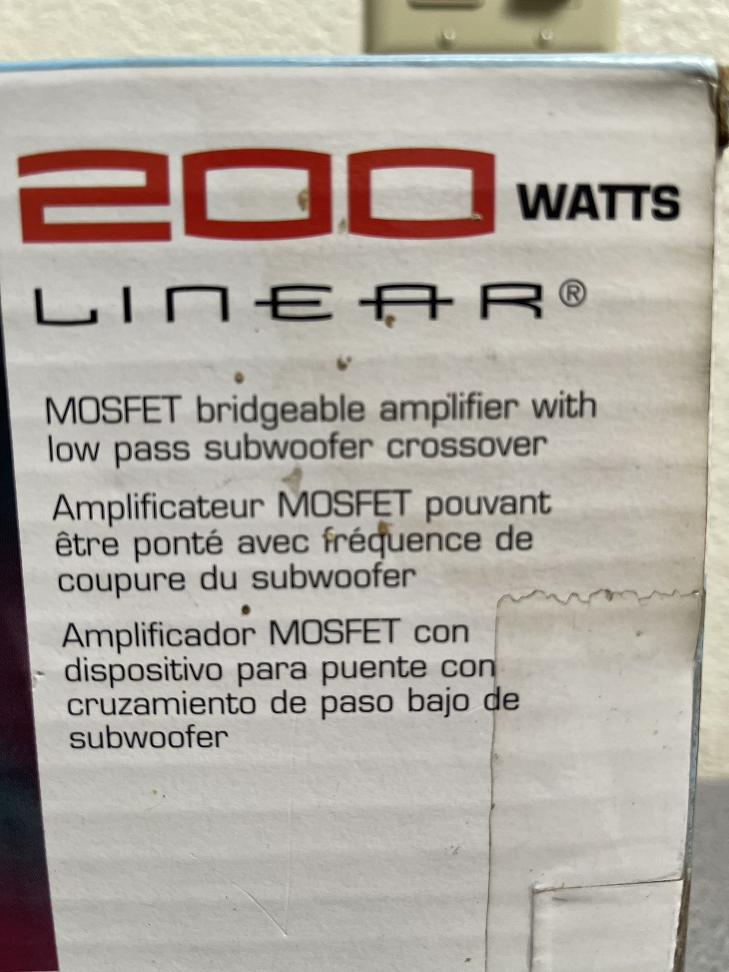 Car audio 200 watt bridgeable amplifier 200, still in its original factory sealed box, never used.