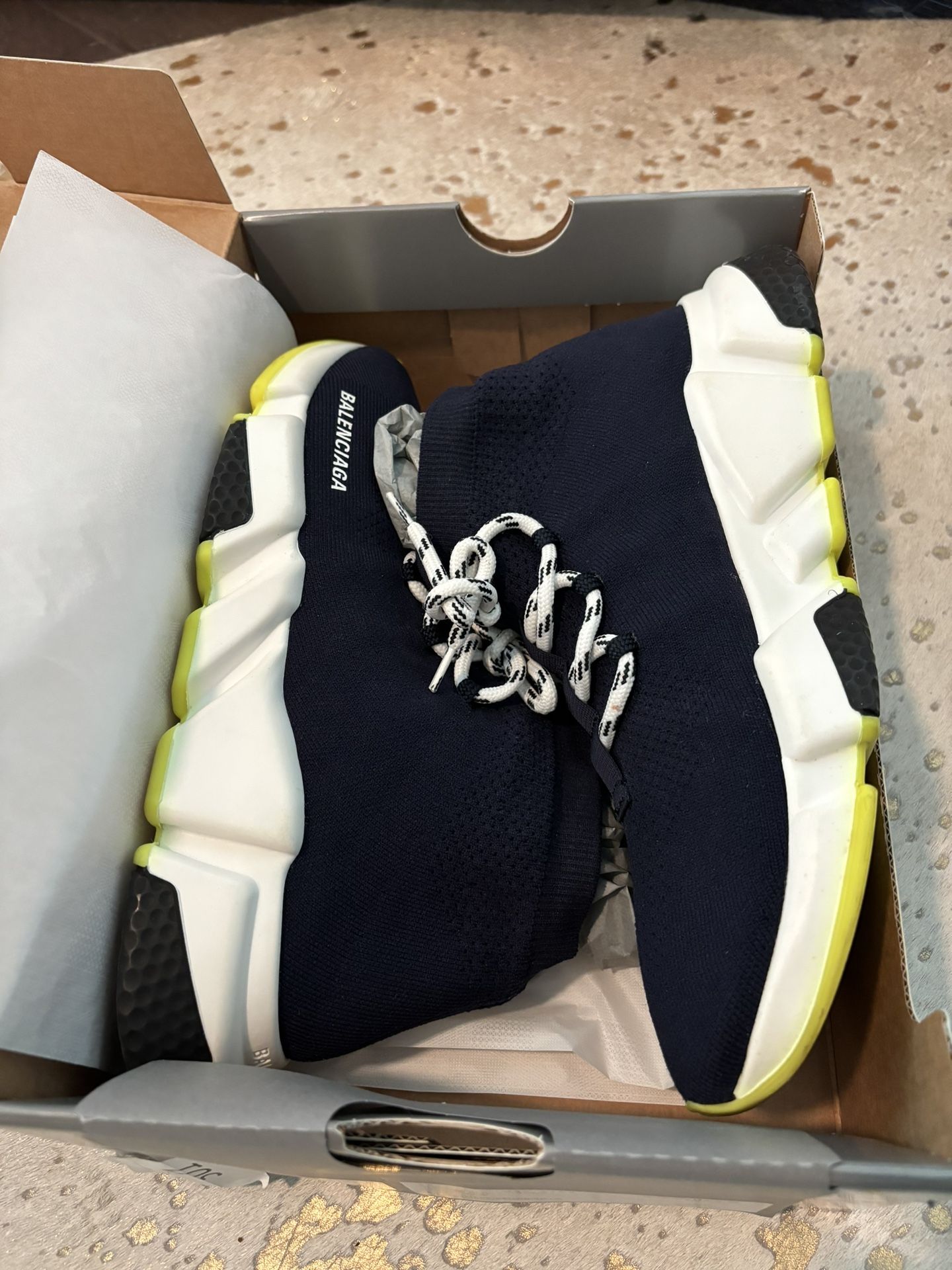 BALENCIAGA Speed Lace Up Knit Sock Marine Blue Logo High Top Trainers Women’s Size:42 Asking $575
