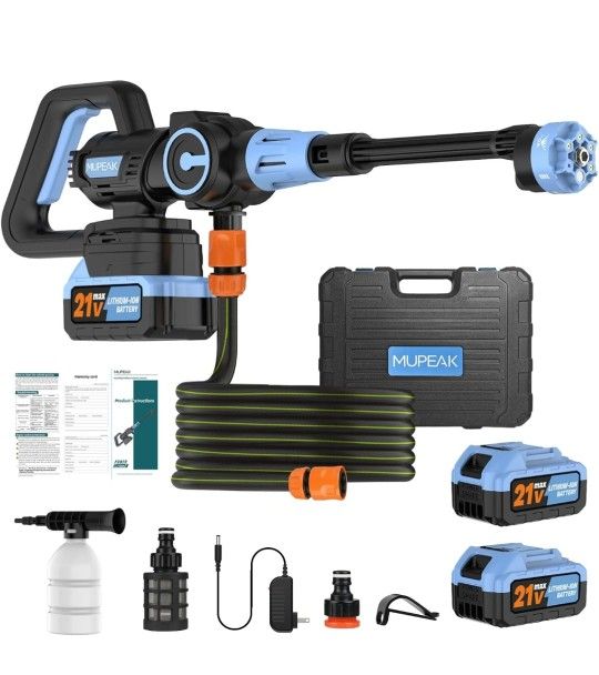 Cordless Pressure Washer, 1100PSI-Brushless Portable Power Washer with 2 Batteries, 3 Modes Adjustable/6 in 1 Nozzle, 21V 4.0Ah Battery Powered Pressure Washers for Home, Car, Garden