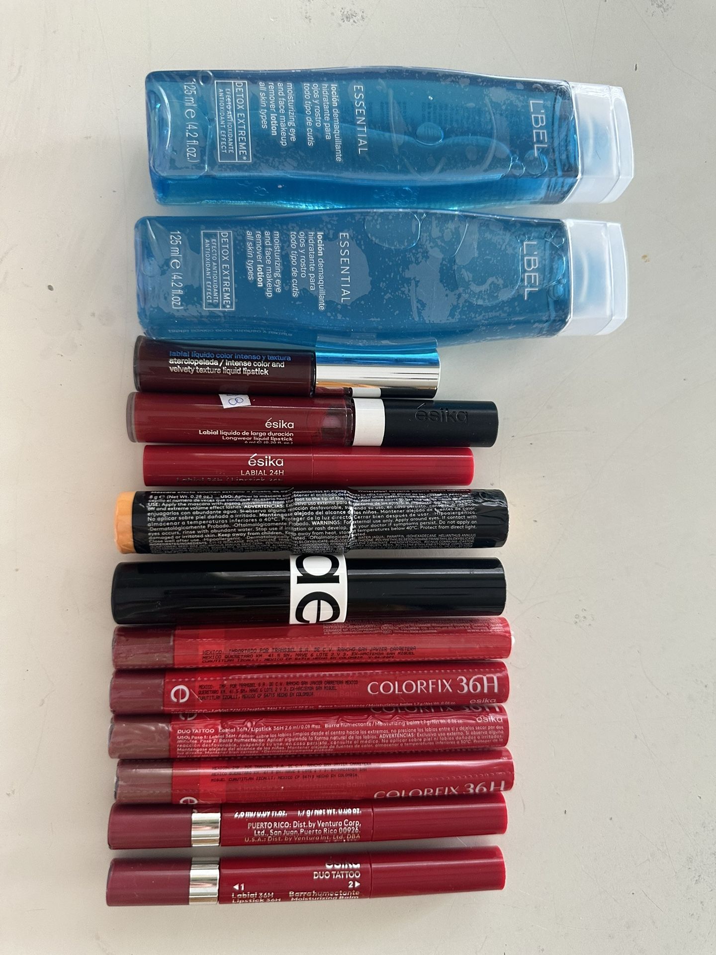 Tengo loción desmaquillante, rímel y labiales de la marca esika y l’bel a buen precio. Los precios varian.