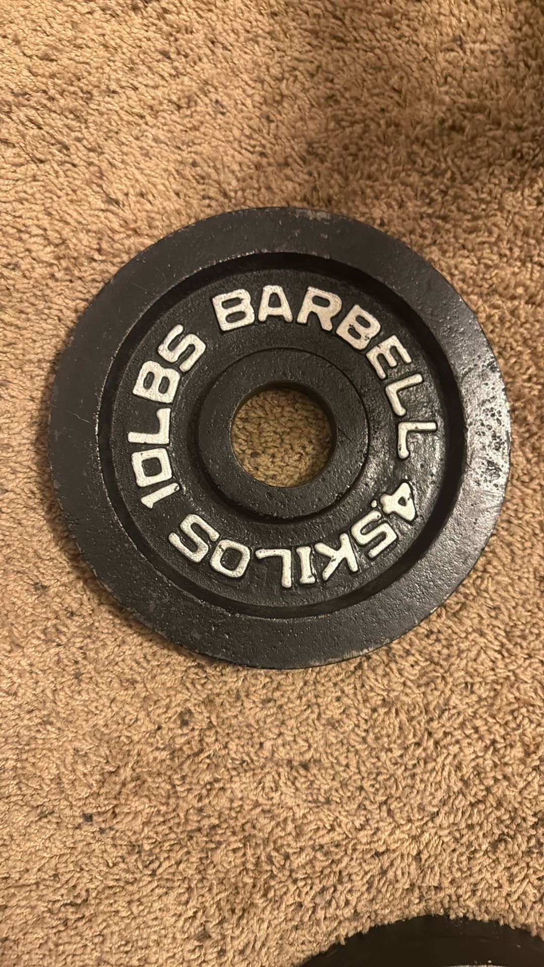 One 2” 10 lb Olympic plate cap barbell the old kind that was made good. NOT CAST IRON. This is machined iron see the marks on the back much better quality 10 pound plate Weight Olympic cap barbell Machined steel iron heavy duty deep dish Gym fitness workout strength training metal iron steel weight 10 LB 4.5 KG STANDARD BARBELL 2” Olympic size Iron steel vintage heavy duty metal weight plate 10 pounds total Olympic size 2” for Olympic barbell gym strength training weights weight plates plate Similar to bfco rogue fitness ivanko marcy jack lalanne legacy Jackson York barbell weider international nautilus hampton etc Pickup Cheyenne / Fort Apache