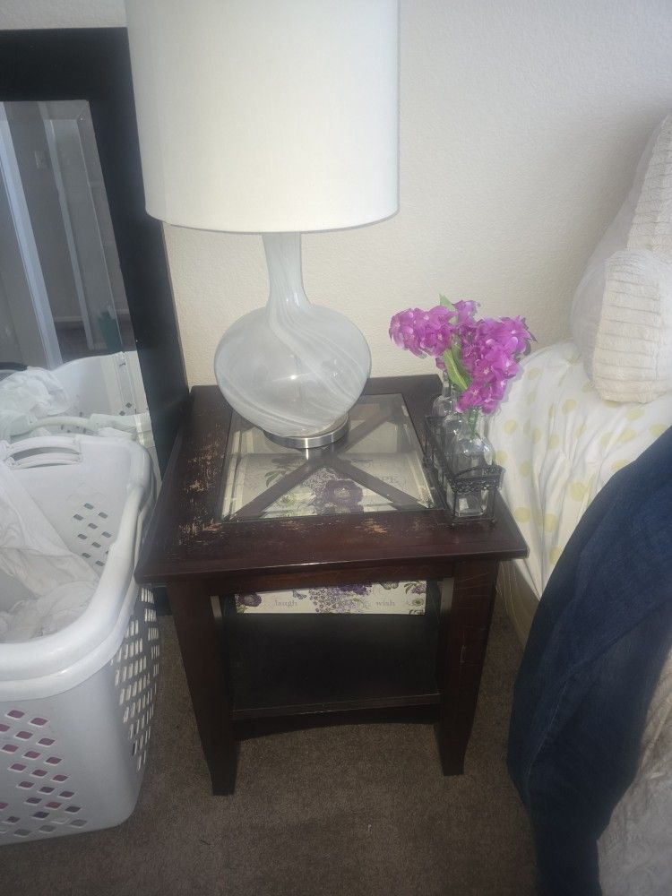 Two brown nite stands with glass on top .One nite stand does have scratches on top you can see in picture. But they are still fuctional,no loose screw or wobbly legs. I am moving and can't take with me. 40 .00 for both