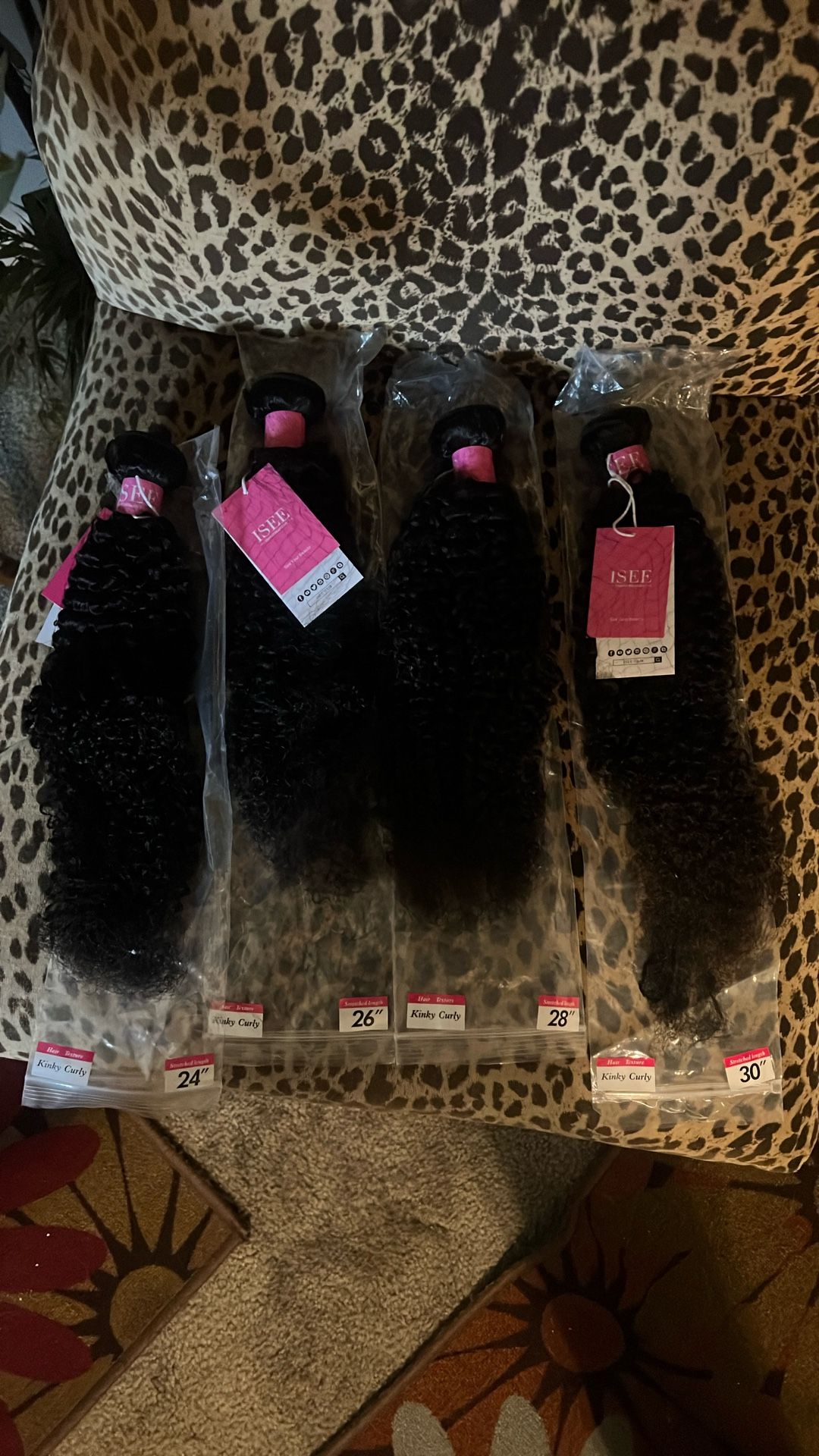 4 bundles 100% human hair kinky curly. Isee brand. Brand new lengths 24-26-28-30