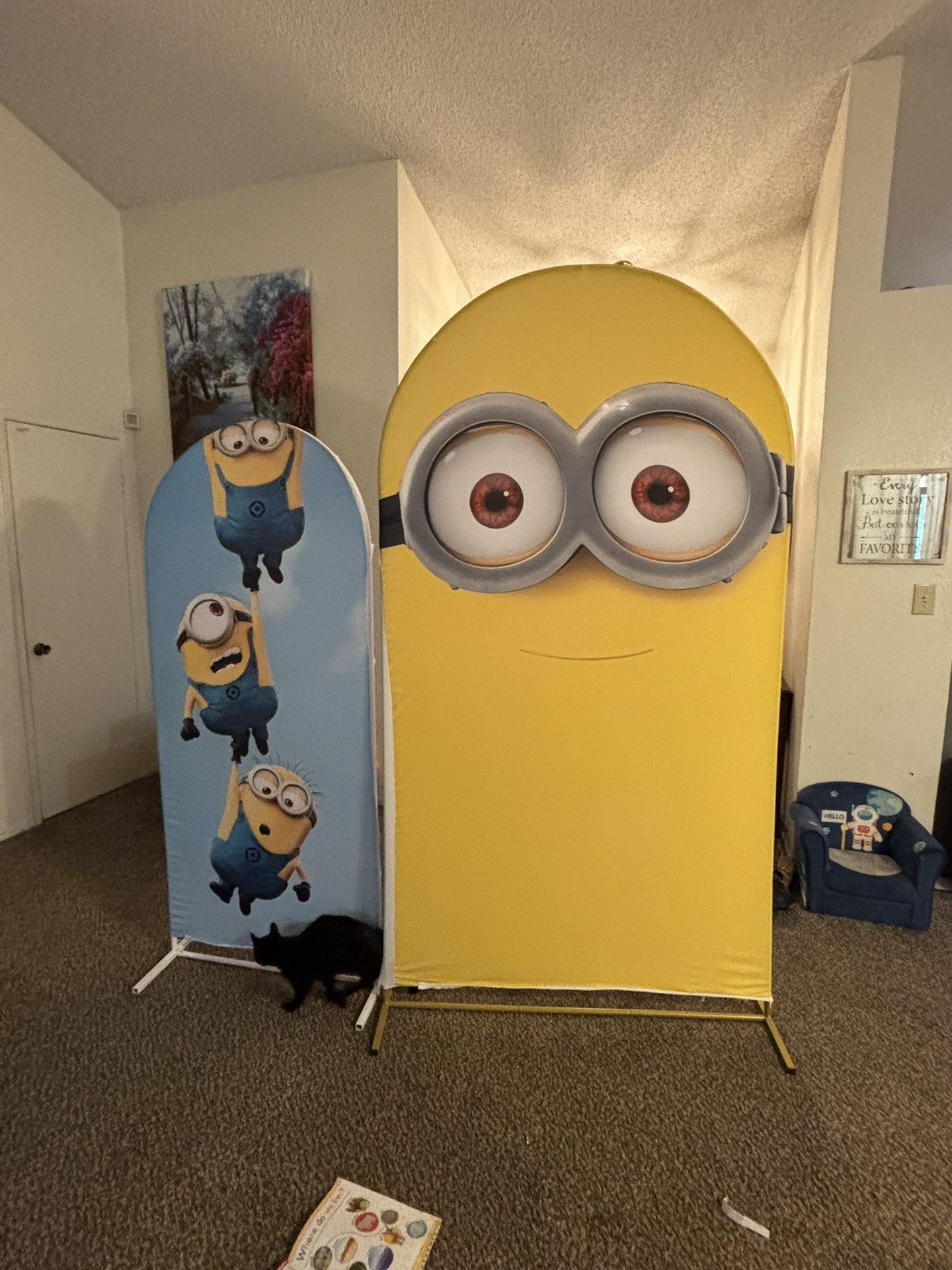 Minion backdrop arch covers. Yellow background is 7.2 ft. And blue backdrop is 6 ft.