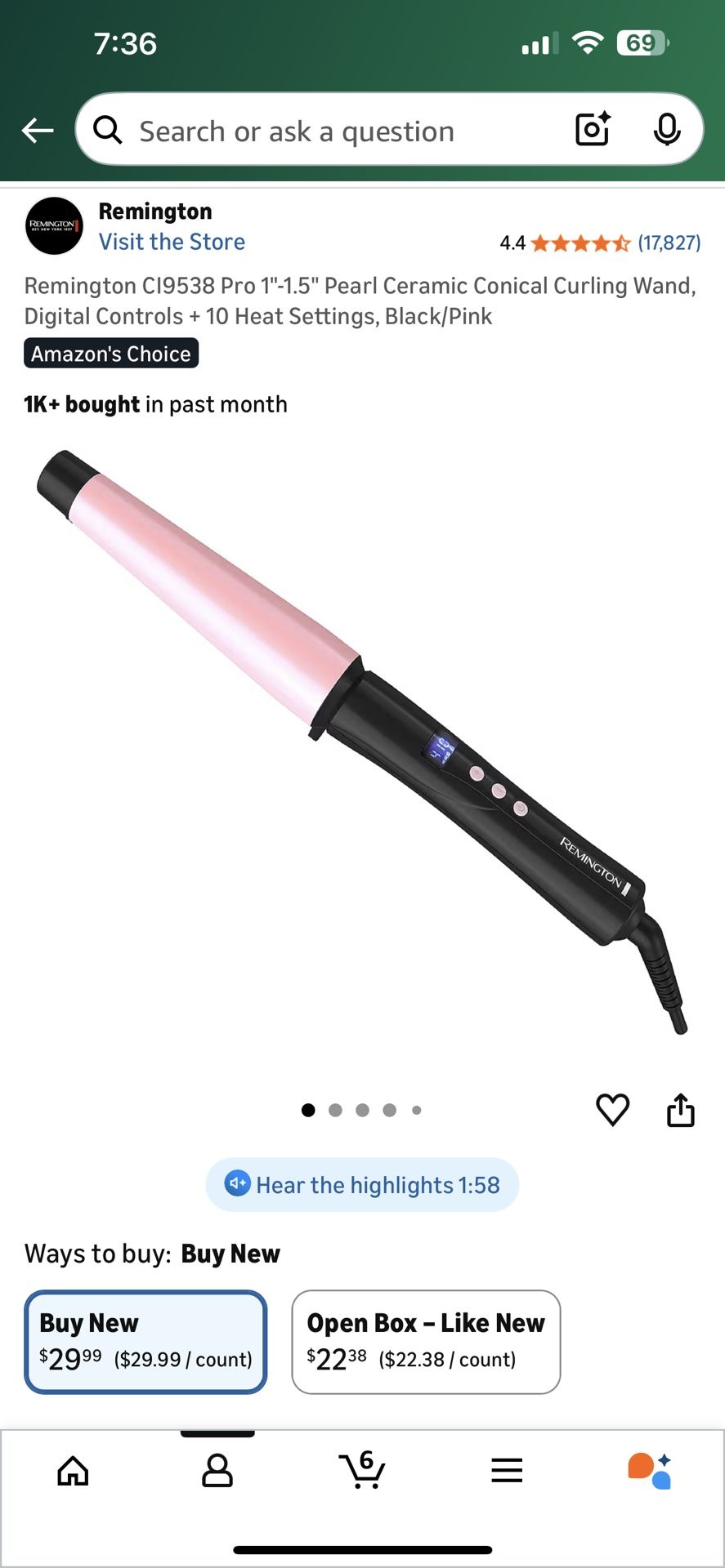 Remington CI9538 Pro 1"-1.5" Pearl Ceramic Conical Curling Wand, Digital Controls + 10 Heat Settings, Black/Pink Used only couple times
