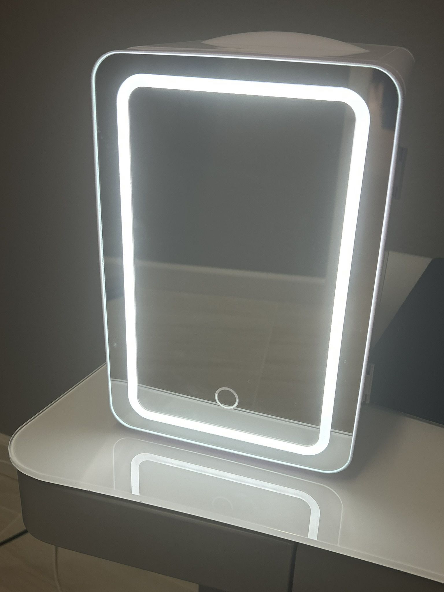 Mini fridge with light up mirror. 3 different light settings. Adjustable shelf. Works perfectly. Excellent condition! ******pickup in Surprise near the 303 freeway and Waddell Rd******