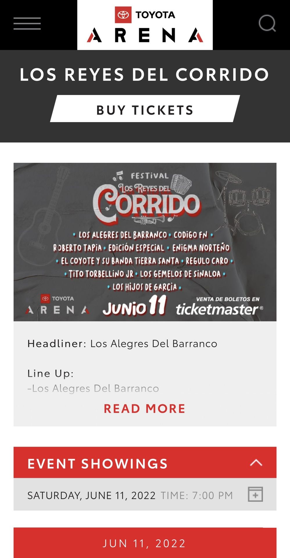 Los reyes del corrido concert At Toyota / Citizens Bank Arena Can’t make it tomorrow, need to sell! Concierto para mañana ! En el Toyota Arena / Citizens Bank Arena en Ontario CA $217 each/ cada uno