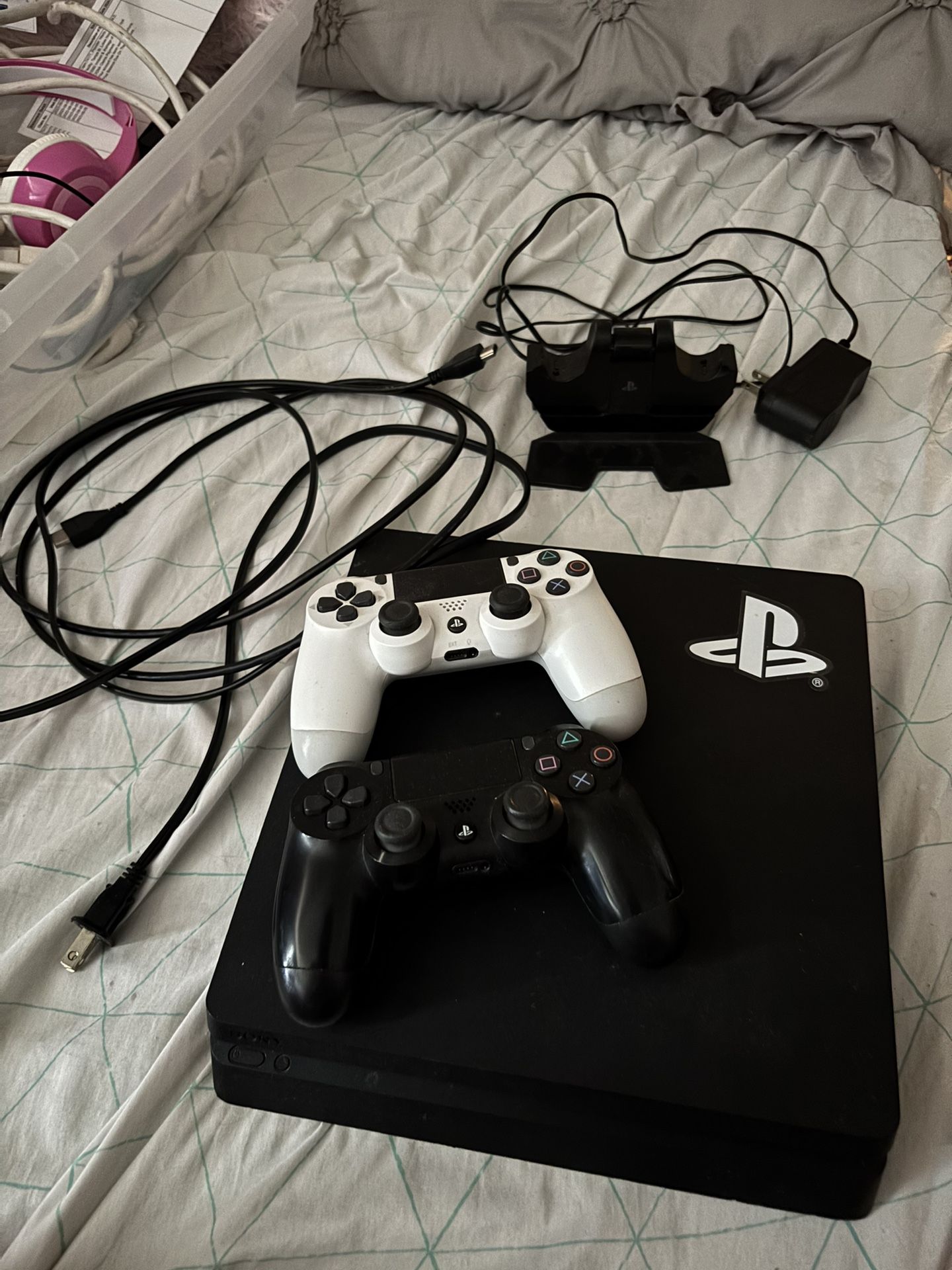 Selling my ps4 slim! Have had it for a few years but haven’t used it in over a year due to getting a ps5. Comes with all cords, controller charger, and 2 controllers. $100 for all of it. Perfect condition. Located in north Phoenix but willing to meet or drop off for extra $5 !