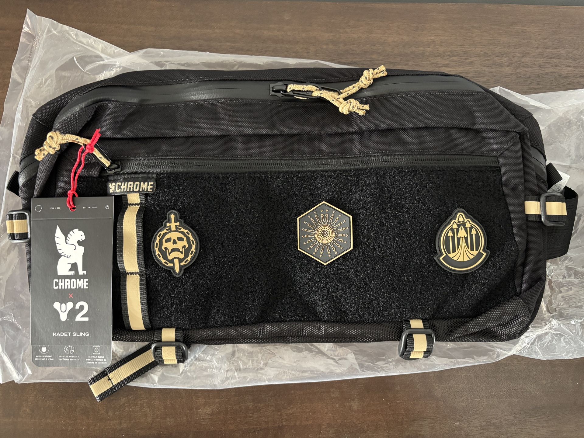 Brand new with plastic packaging, packaging is underneath the bag. Took it out to take pictures of the bag Best Offer It is a retired reward Designed and manufactured in partnership with Chrome Industries Dimensions: 7.75” x 19.7” x 3.5” (197mm x 500 mm x 89mm) Strap Length: 20” - 46.5” Volume: 9 liters Large zippered main pocket with interior organization - fits up to 7” (180mm) wide tablet, unpadded Materials: Outer shell is water resistant, heavy-duty Nylon with PU Backing Lined in custom print recycled Polyester Weight: 1.34 lbs (0.61kg) Crossbody adjustable strap with stabilizer Padded rear U-lock holster Iconic seatbelt buckle with bottle opener for easy on and off Special features: reflective webbing details, hook & loop material on front with 3 removable Destiny 2 PVC patches (Raid Icon, Fireteam Icon, Raid Node Icon); Destiny Tricorn logo topstitch on back, custom Destiny details throughout