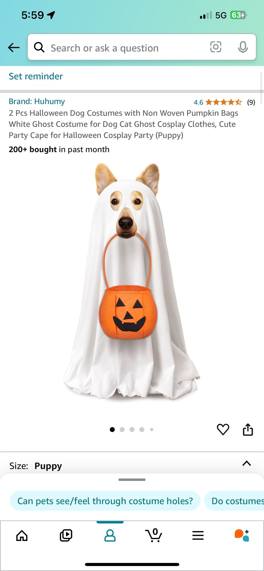 Puppy Size Brand New Dog Pet Cat Ghost Halloween Costume
