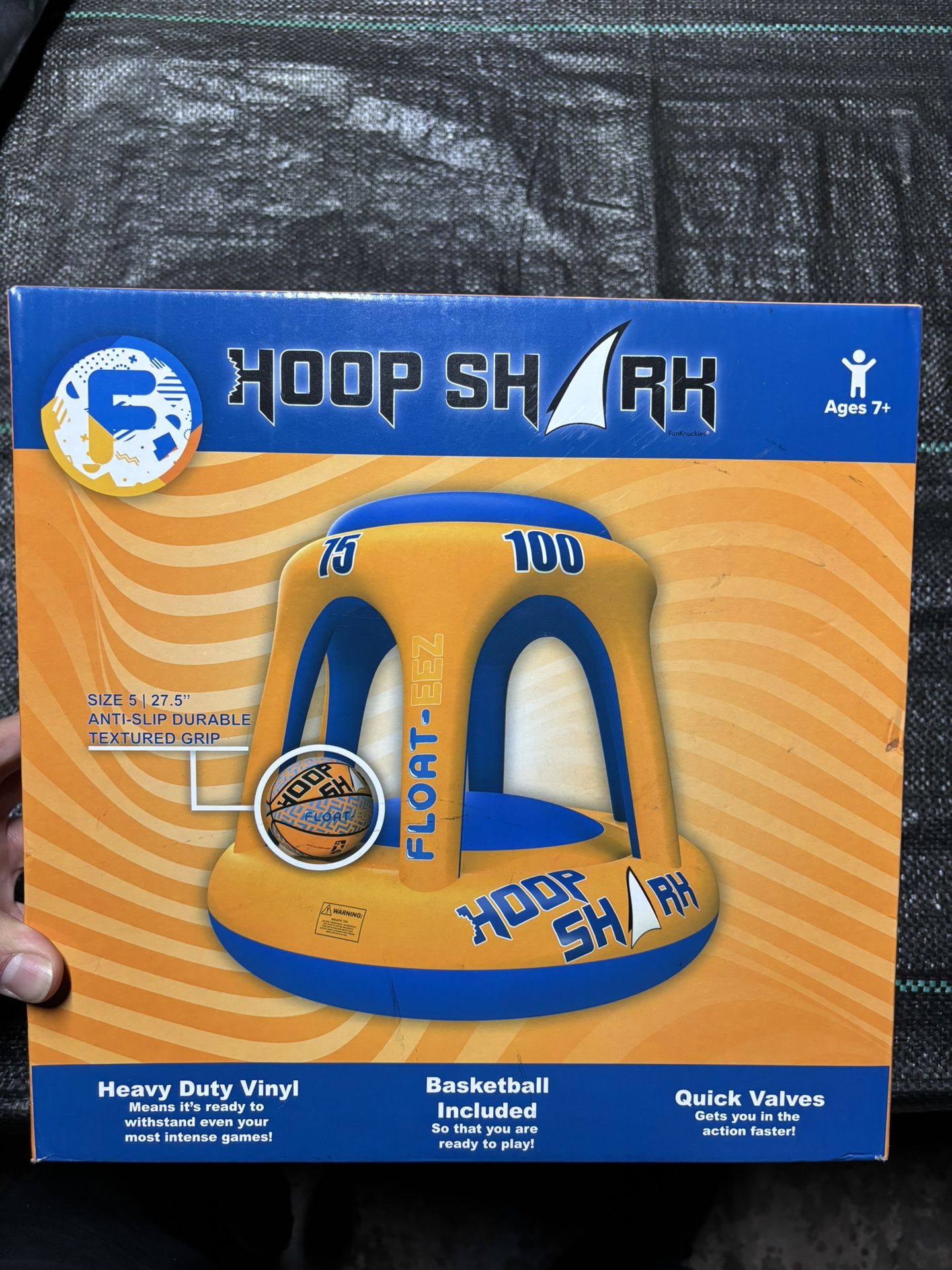 Swimming Pool Basketball Hoop Set by Hoop Shark - Orange/Blue - Inflatable Hoop with Ball - Perfect for Competitive Water Play and Trick Shots - Ultimate Summer Toy