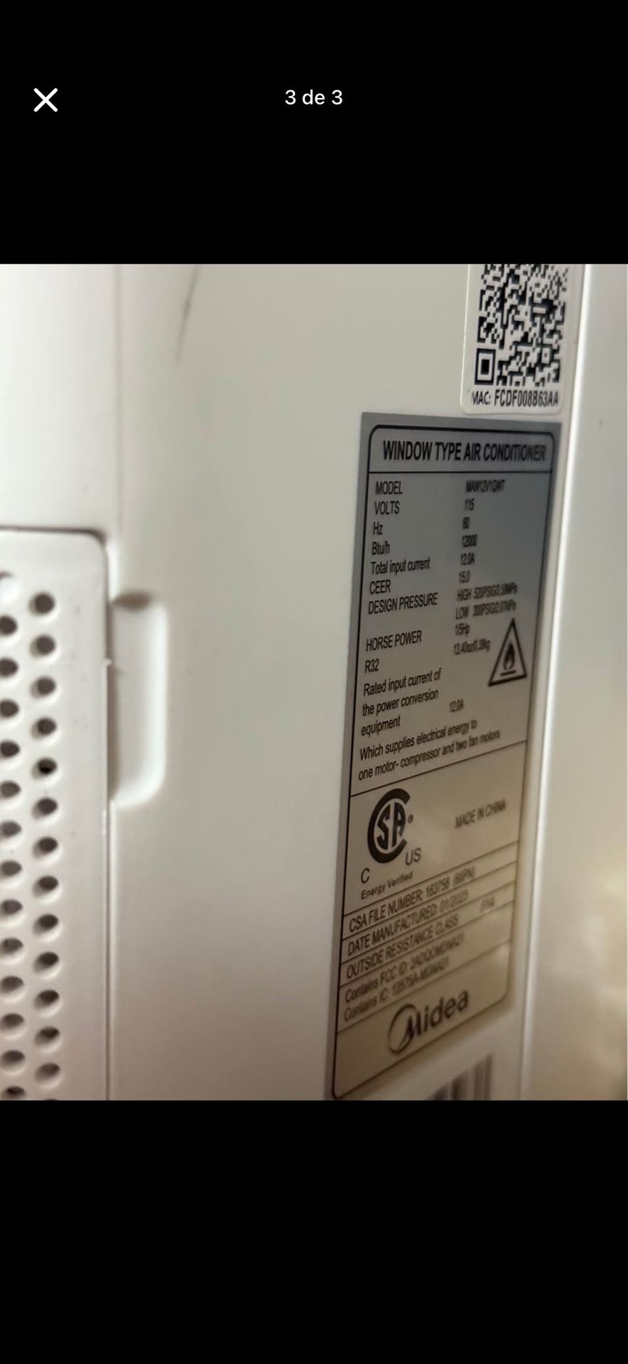 Aire Acondicionado Mides De 1200 BTU 115 Voltios